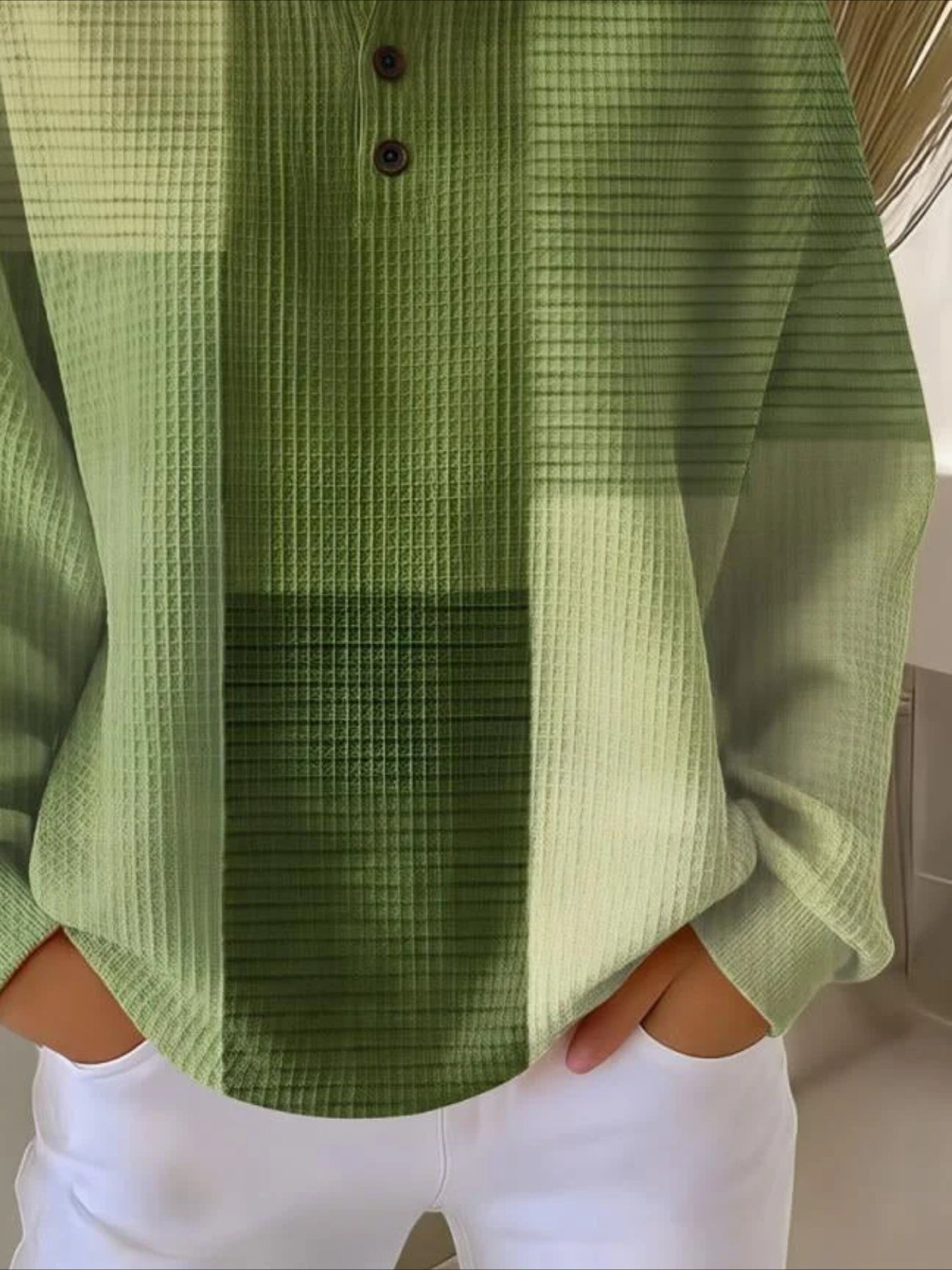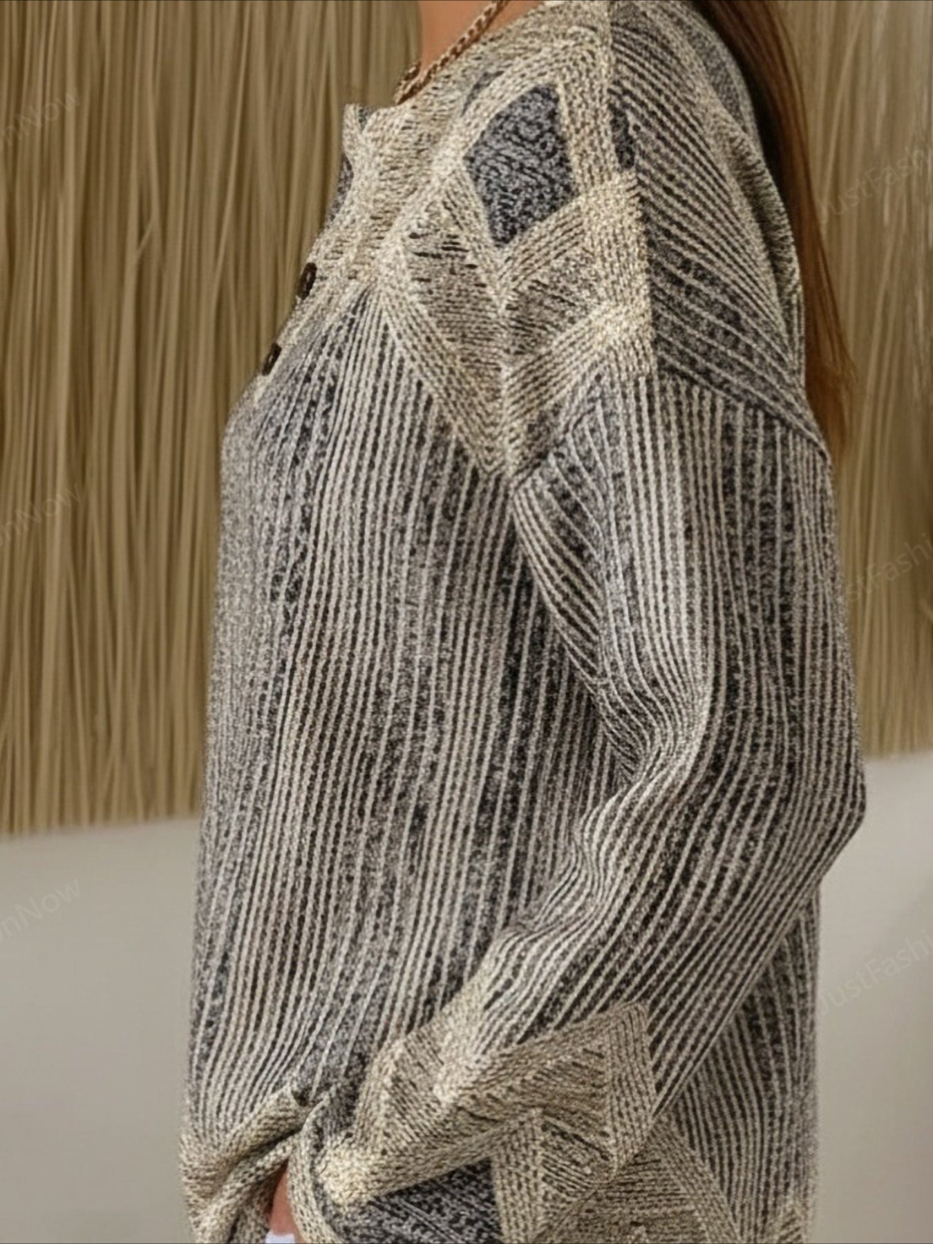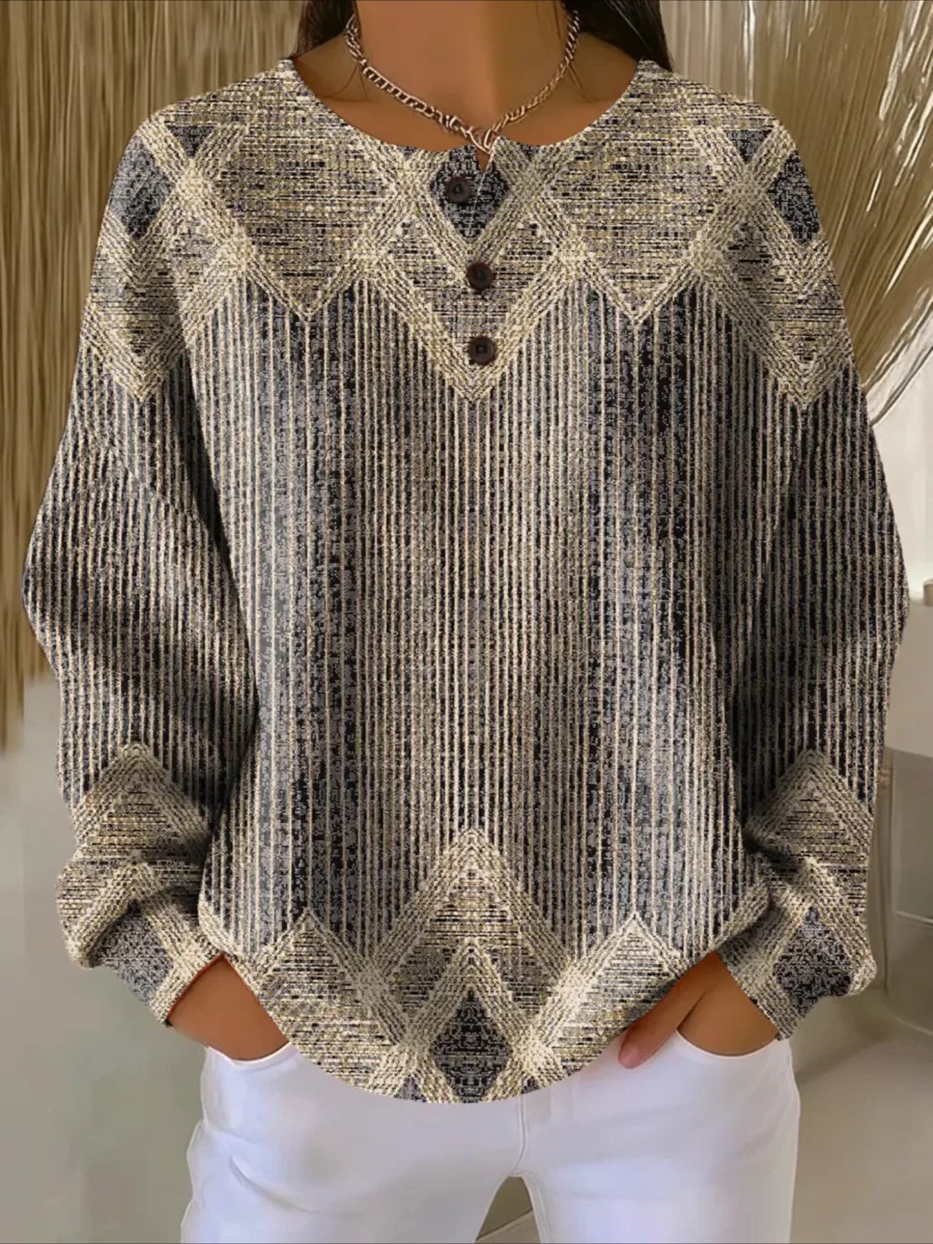 Colorful Ribbed V Neck Braided Print Long Sleeve Regular Sweatshirt