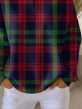 Plaid Vintage Stylish Long Sleeve Crew Neck Regular Tops