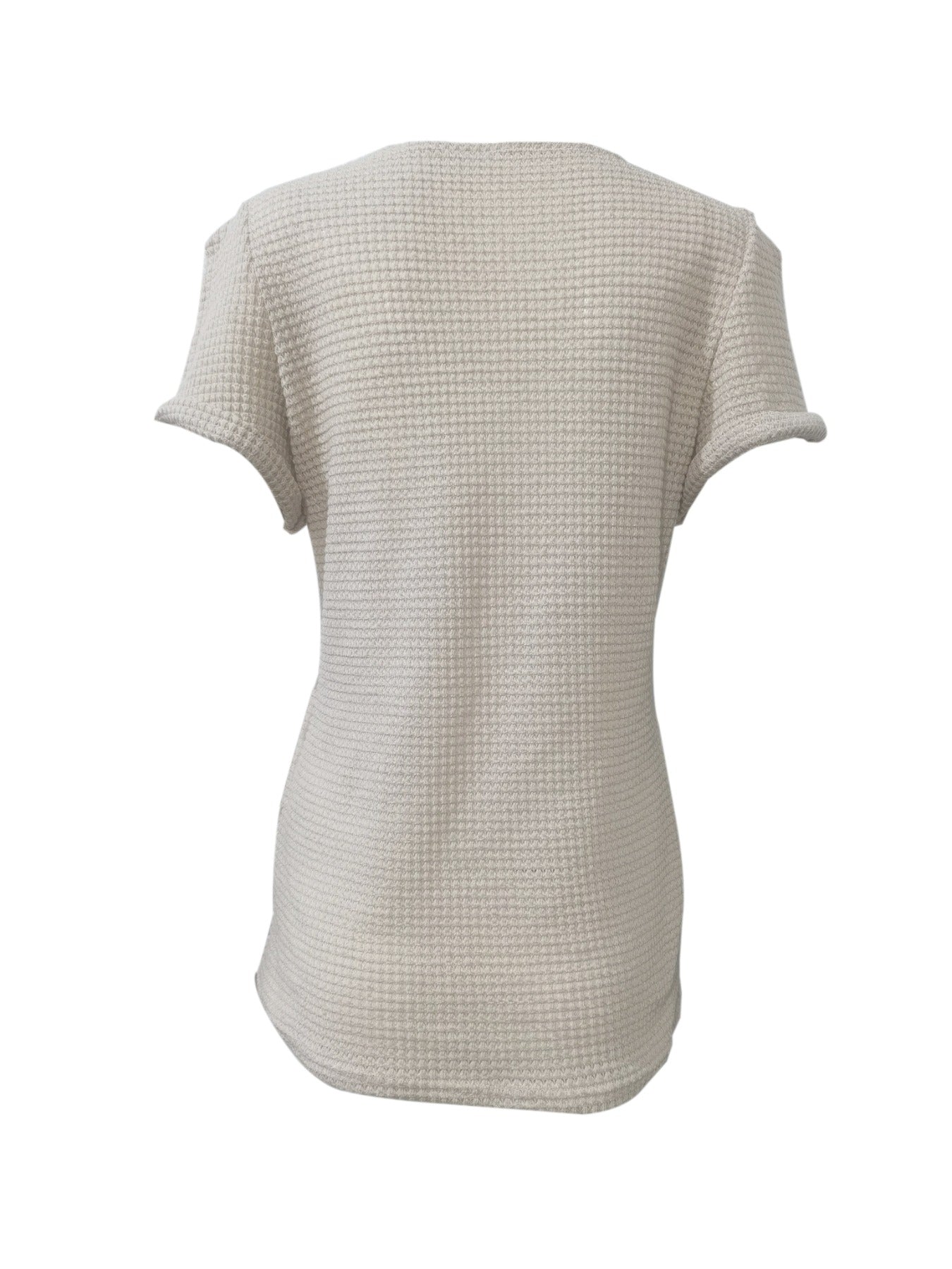 Sale Striped Botton Crew Neck T-Shirt, Elegant Long Sleeve T-Shirt
