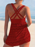 Sale Tribal Print 2 Piece Set Tankini, V Neck Hanky Hem High Cut Swimsuits