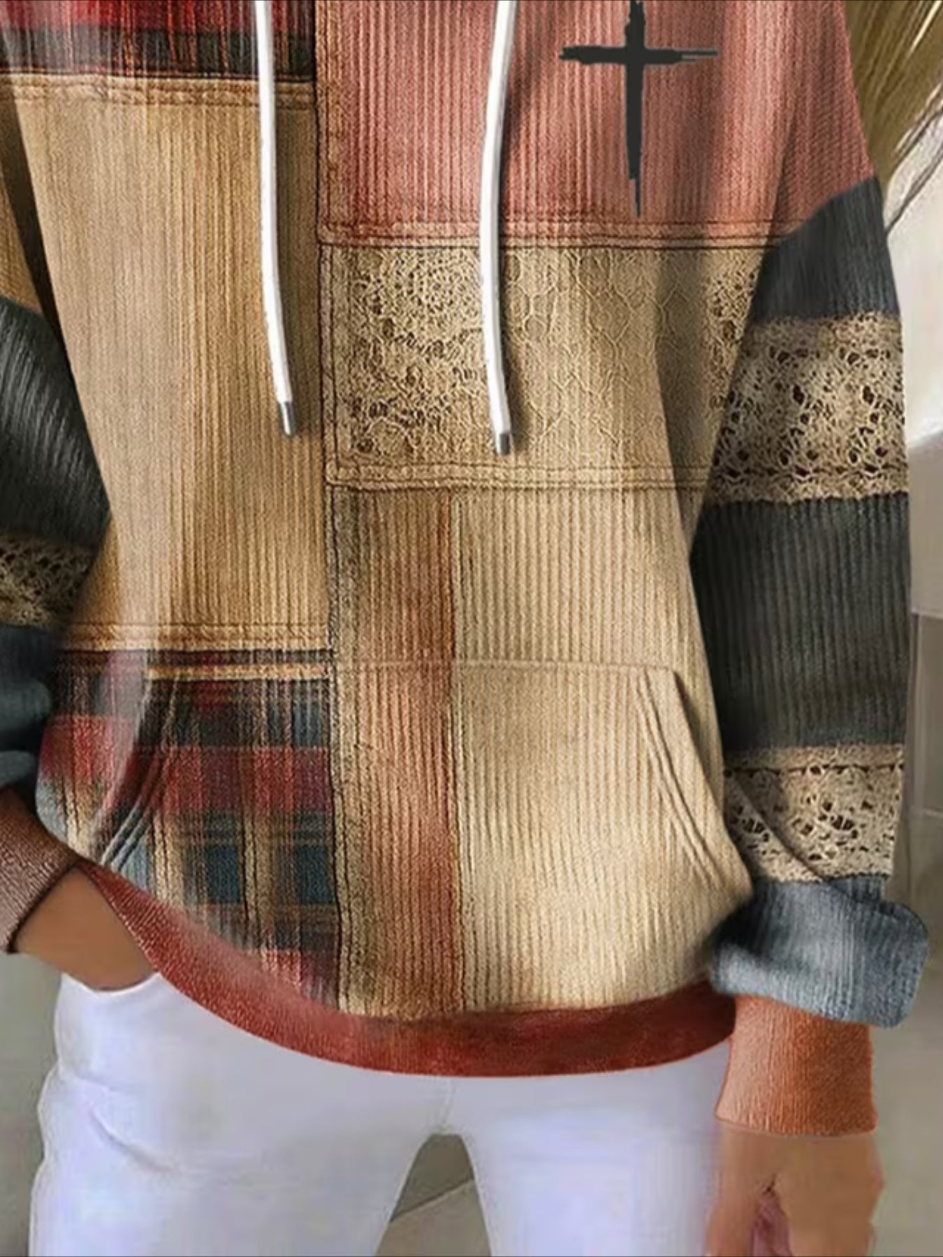 Contrast Stitching Printing Long Sleeve Pullover Hoodie Sweatshirt