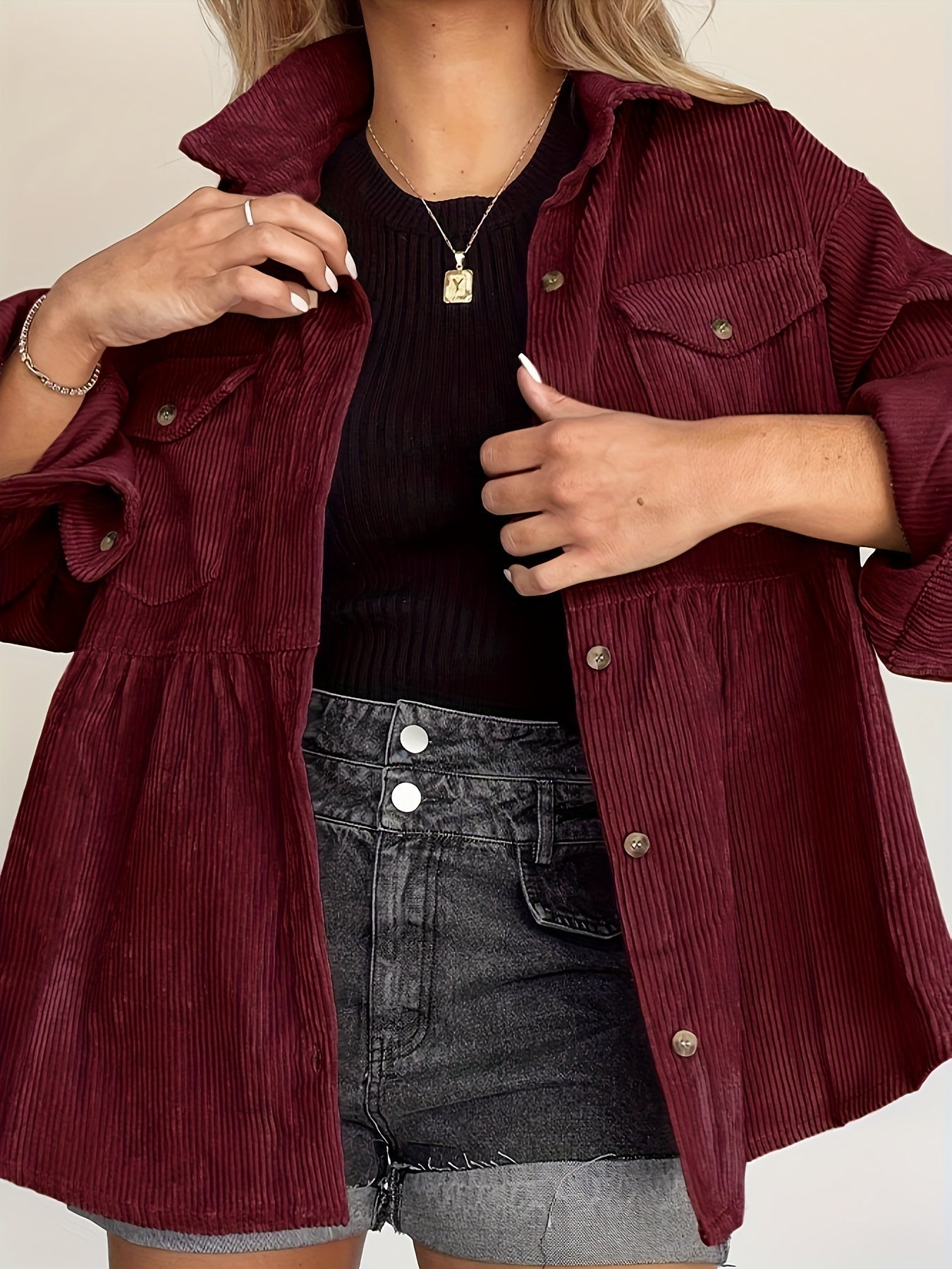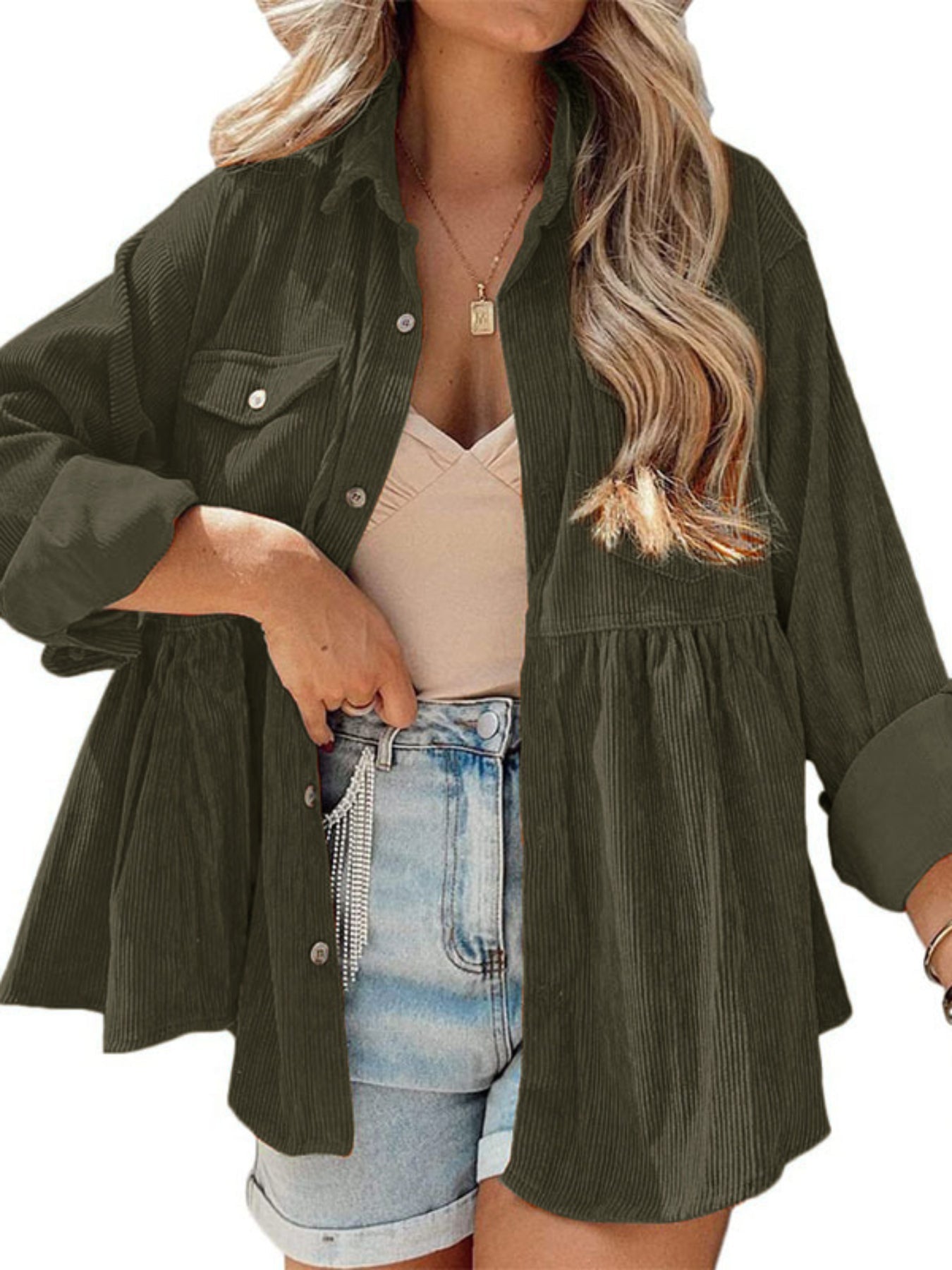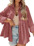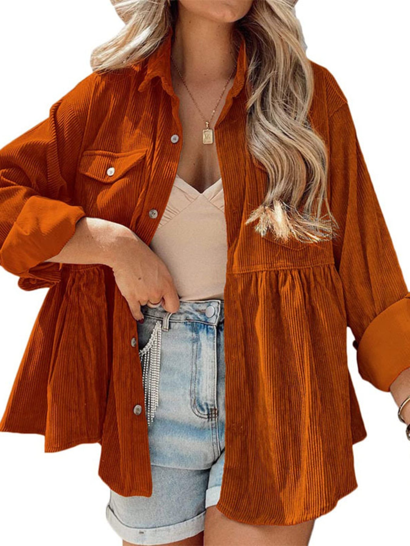 Corduroy Lapel Pocket Jacket, Casual Long Sleeve Button Down Fashion Single Breasted Loose Outerwear