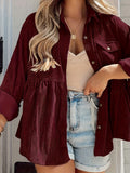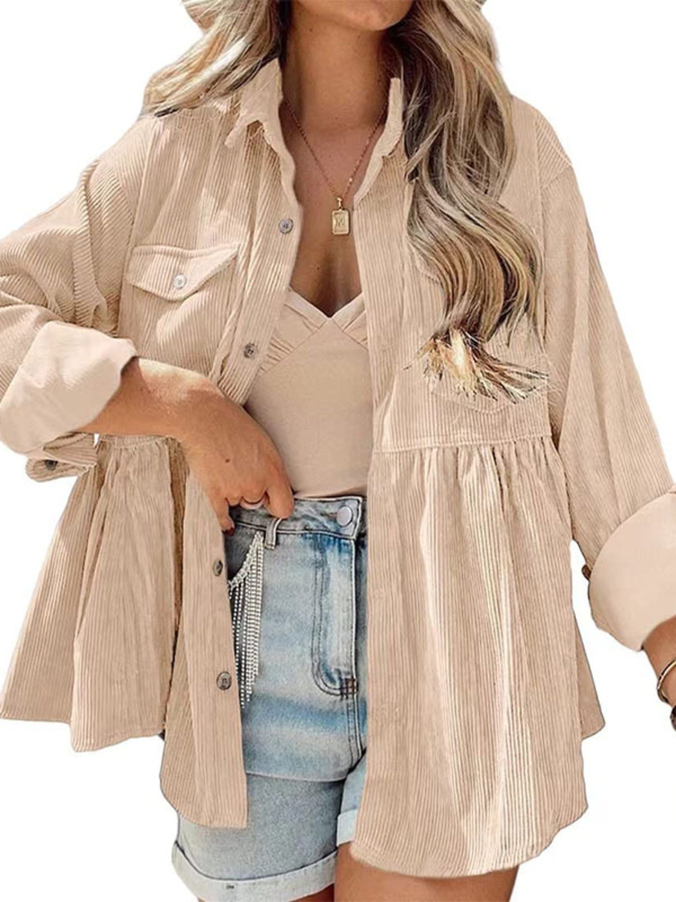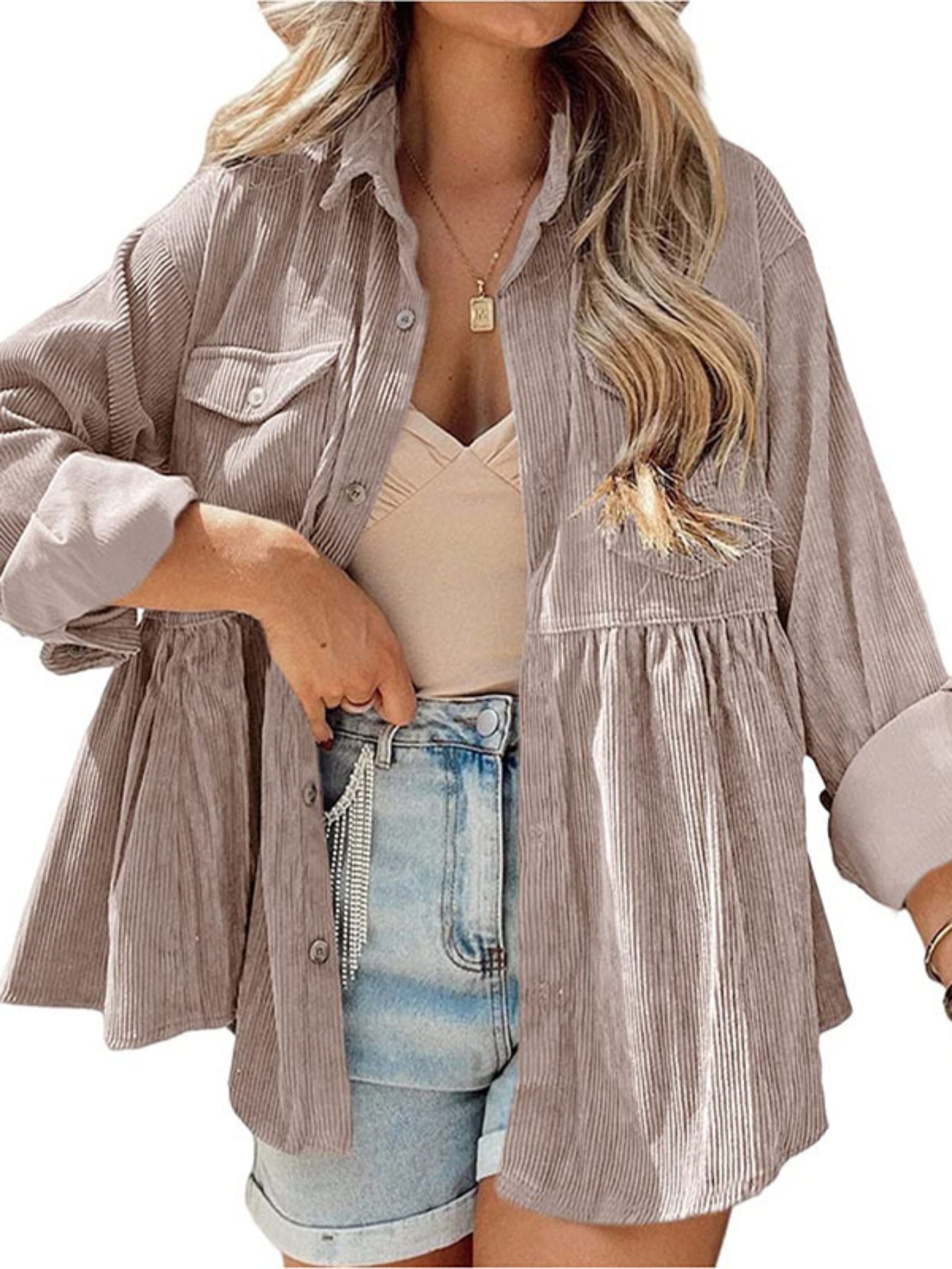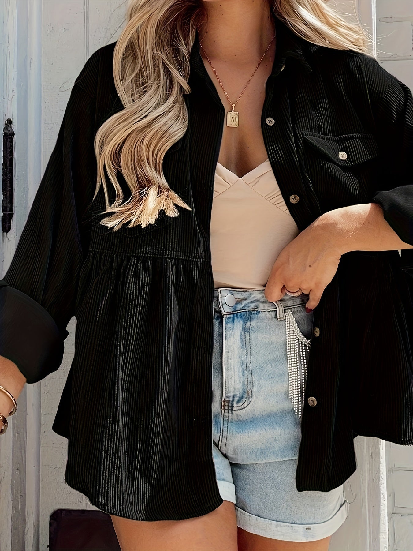 Corduroy Lapel Pocket Jacket, Casual Long Sleeve Button Down Fashion Single Breasted Loose Outerwear
