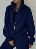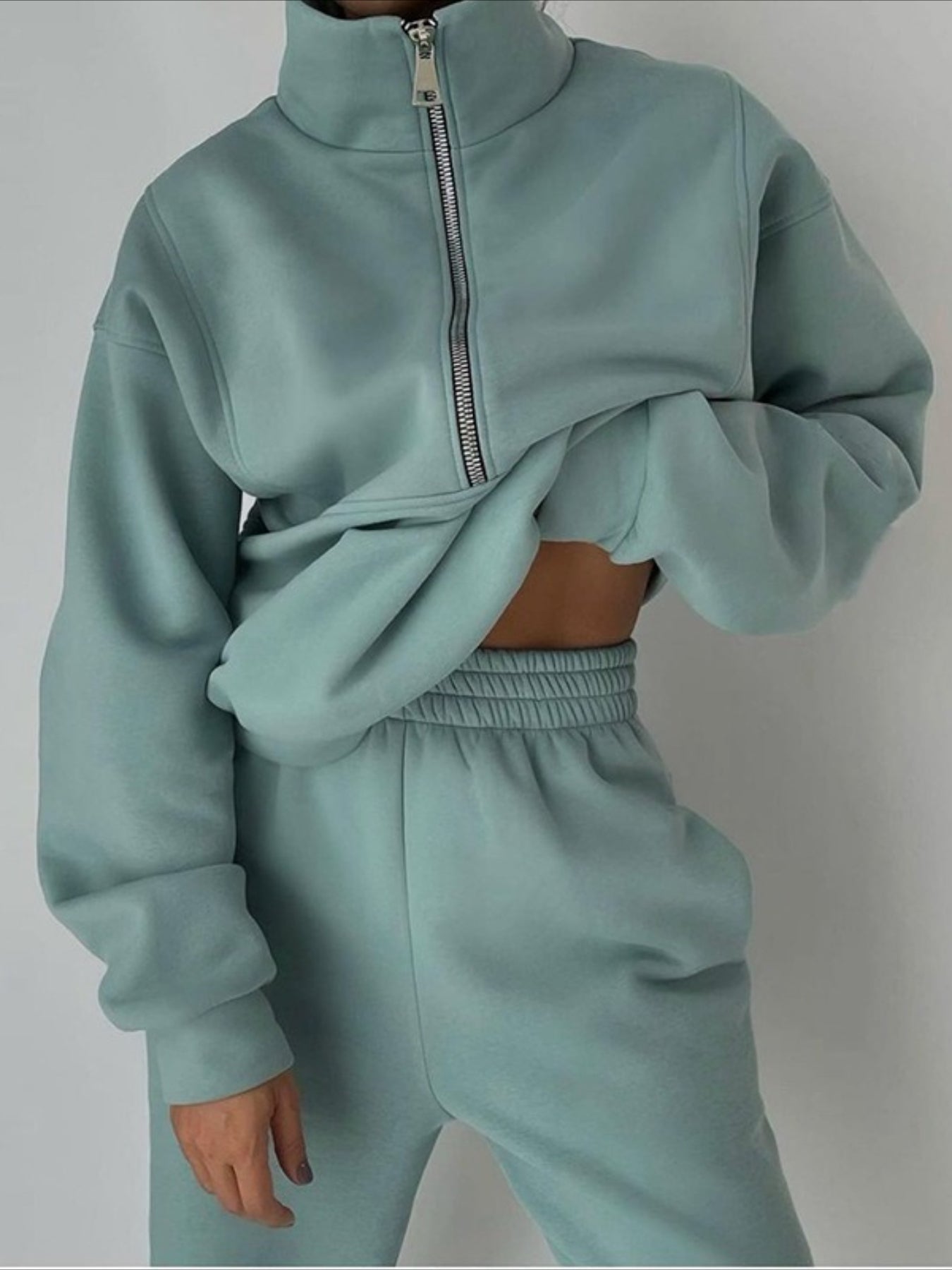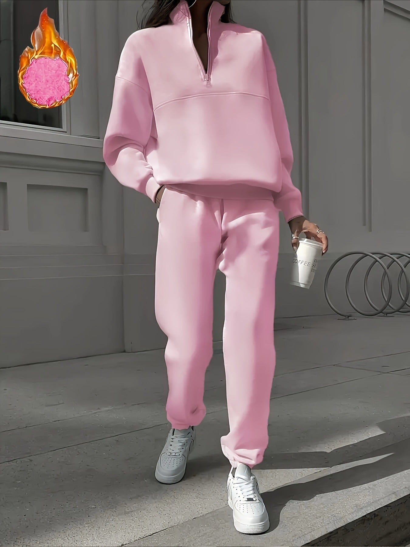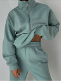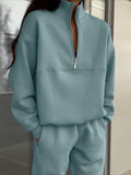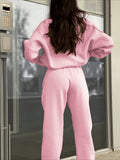 Cozy Fleece Zip-Up Top & Loose Pants Two-Piece Set