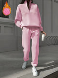 Sale Cozy Fleece Zip-Up Top & Loose Pants Two-Piece Set