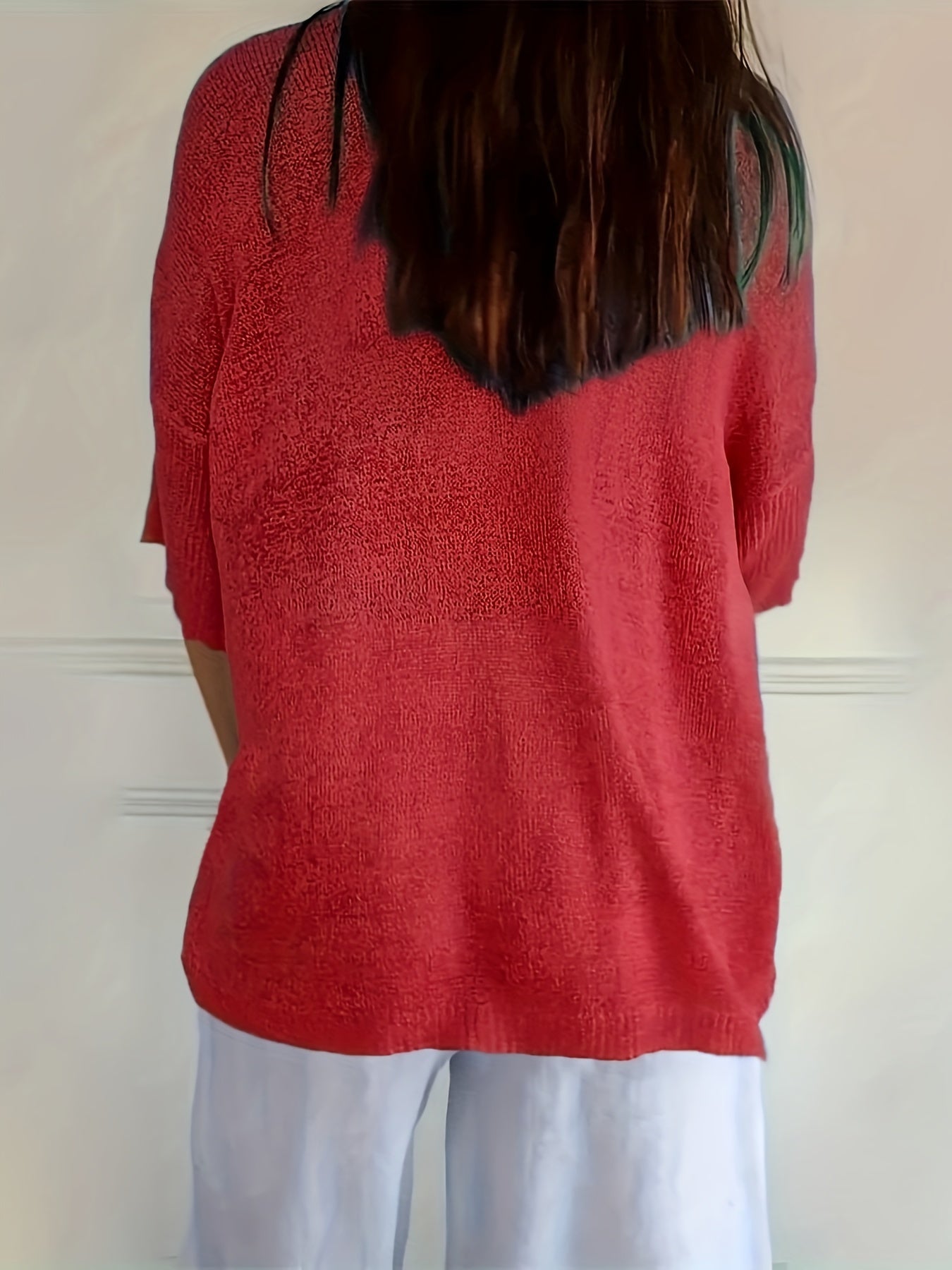 Sale Cozy V Neck Pullover Three-Quarter Sleeve Knitted Sweater