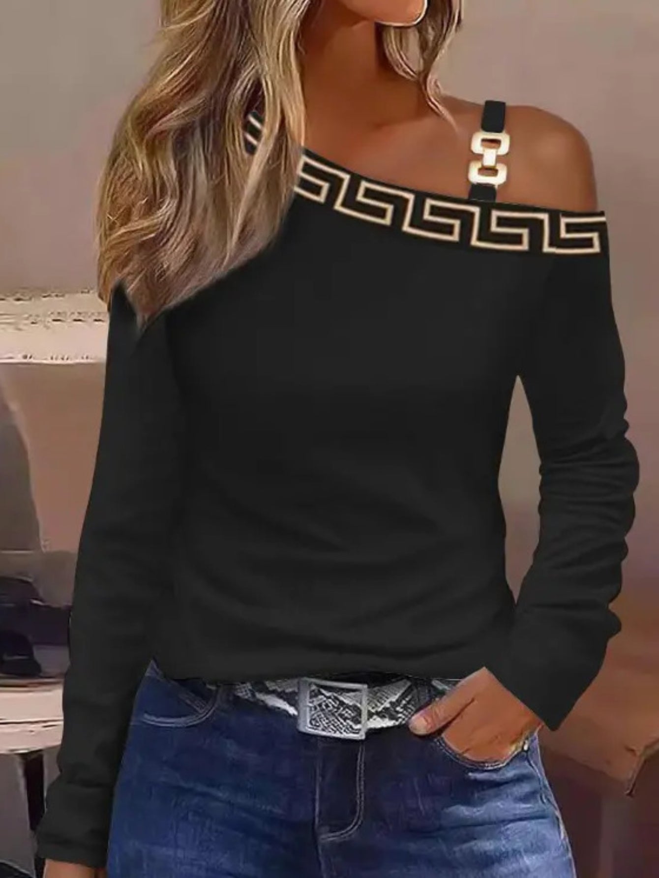 Sale V Neck Long Sleeve Geometric Regular Micro-Elasticity Regular Fit Blouse