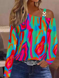 Sale Graphic Geometric Striped Elegant Vintage Fashion Long Sleeve Crew Neck Regular Tops