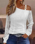 Sale Cutout Lace Stitching Cold Shoulder T-Shirt, Casual Long Sleeve Top