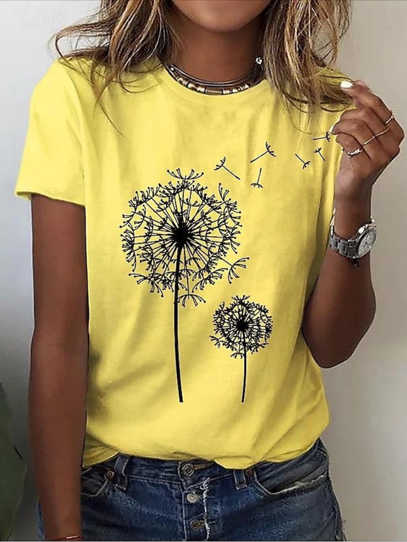 Dandelion Pattern Casual Short Sleeve T-shirt