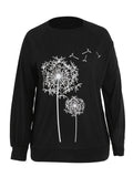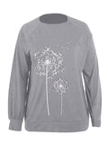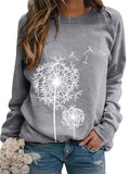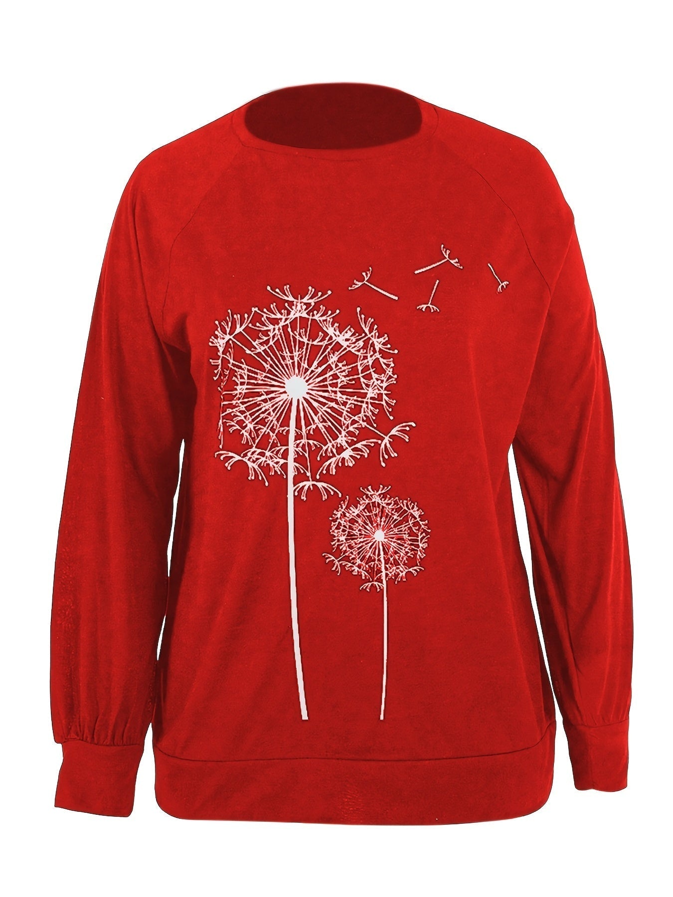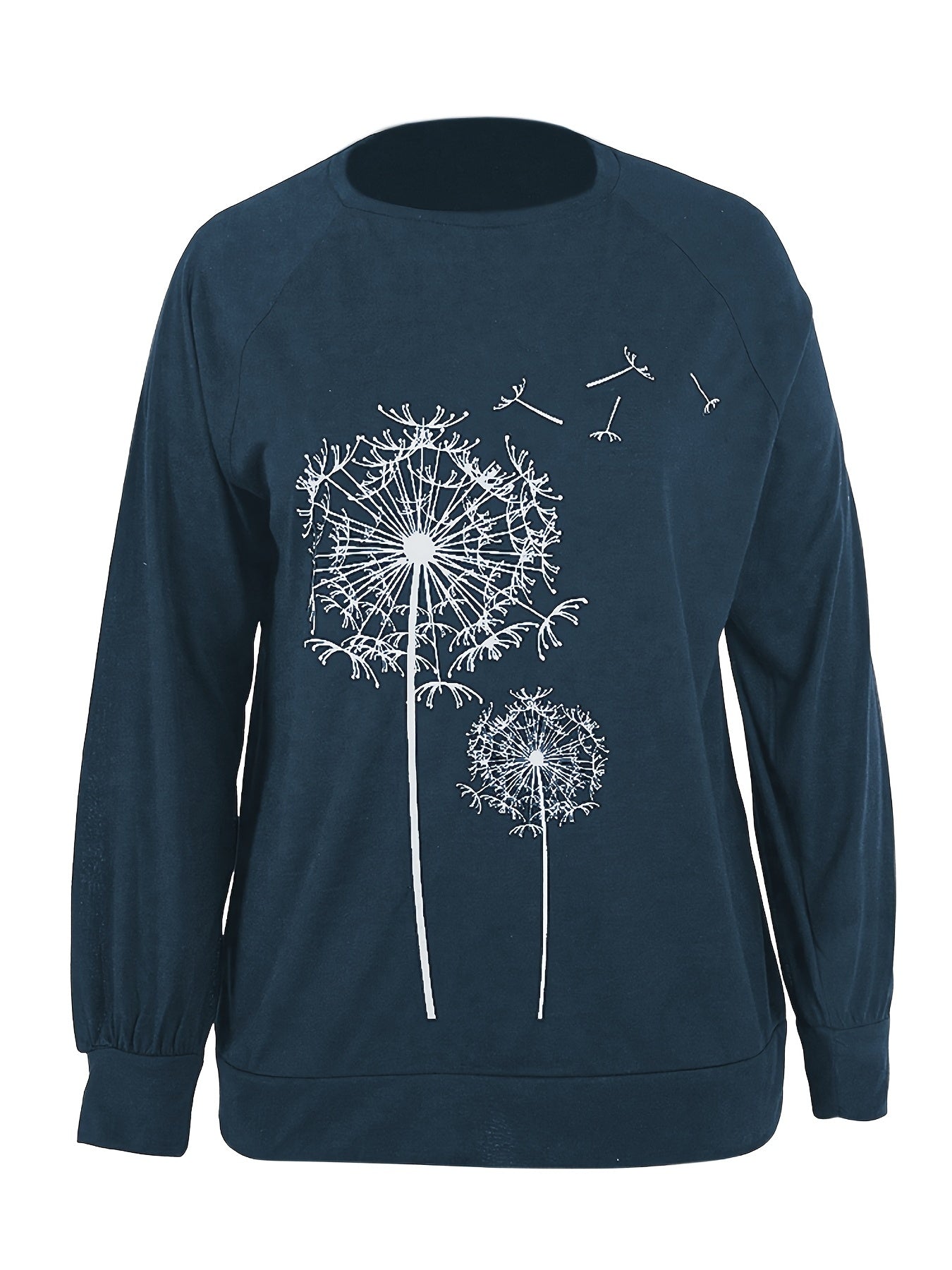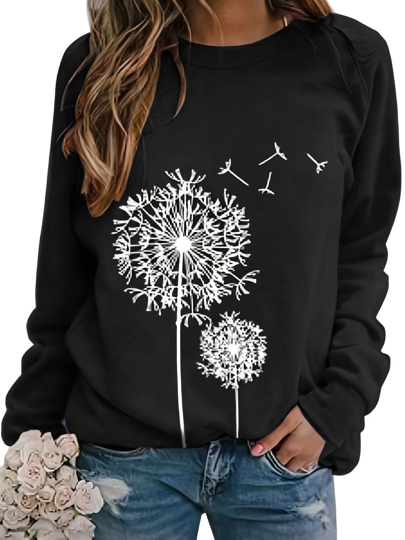 Dandelion Print Crew Neck T-shirt, Casual Loose Long Sleeve T-Shirts Tops