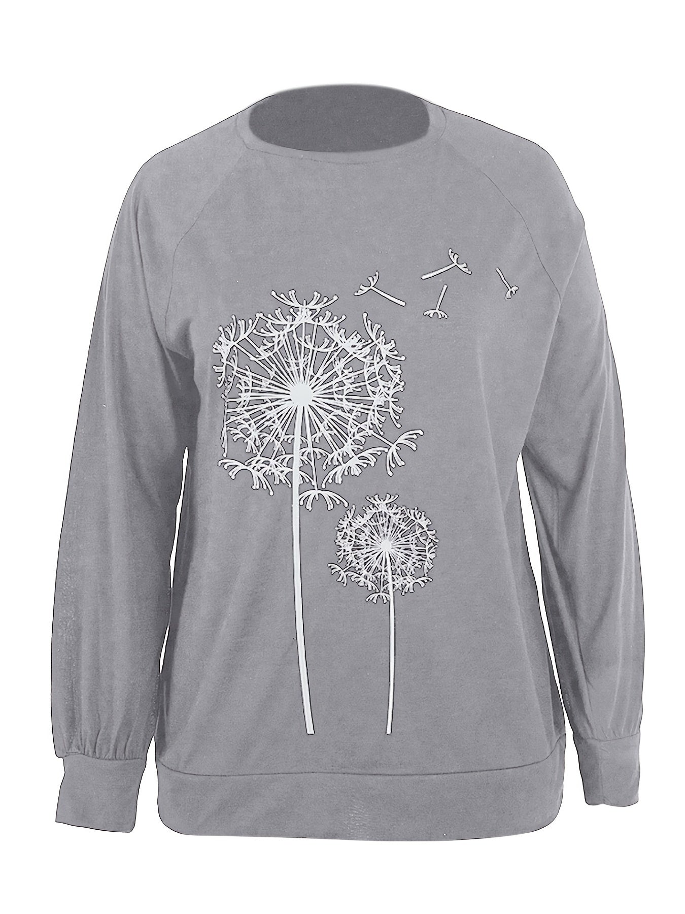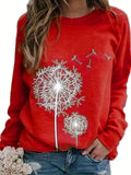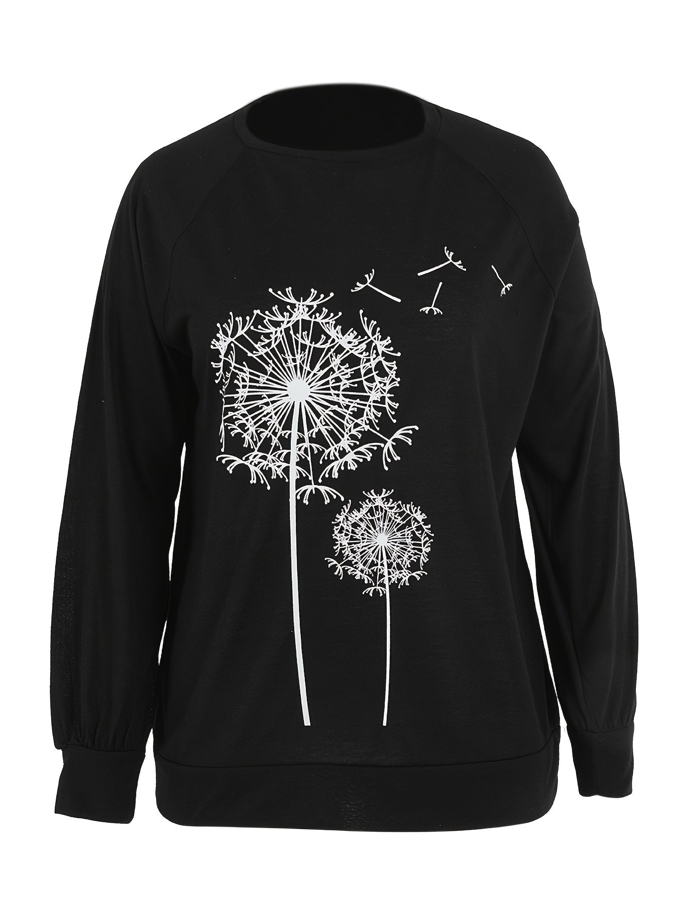 Sale Dandelion Print Crew Neck T-shirt, Casual Loose Long Sleeve T-Shirts Tops
