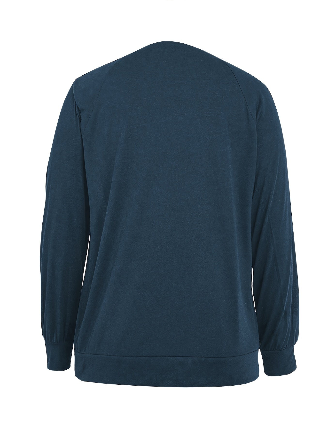 Sale Striped Botton Crew Neck T-Shirt, Elegant Long Sleeve T-Shirt
