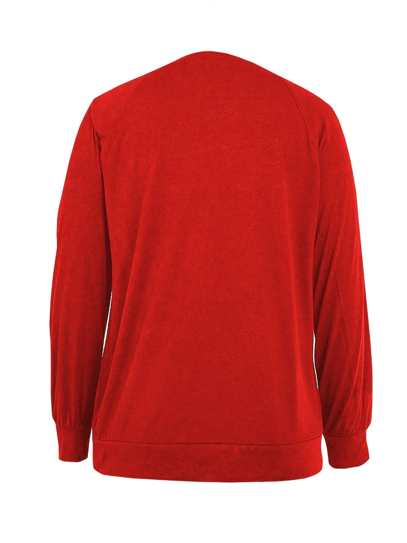 Christmas Tree Print Button Decor T-shirt, Casual Long Sleeve Plaid Print T-shirt