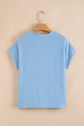 - This crewneck tee is fashionable with corded knit silhouette.It features a contrast patched chest pocket which adds chic detail.This knit t shirt is soft and breathable.Pair well with most pants and shorts.