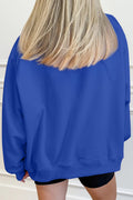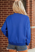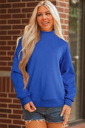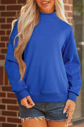 Dark Blue Solid Color Oversized Mock Neck Sweatshirt