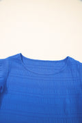 Sale Dark Blue Textured Ruffled Sleeve Round Neck Top