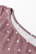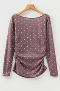 Dark Brown Polka Dot Boat Neck Knit Long Sleeve T Shirt