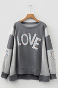 Dark Grey LOVE Graphic Exposed Seam Patchwork Uneven Hem Chic Sweatshirt