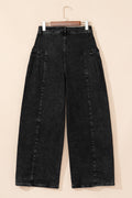 Carbon Grey Mineral Wash Button Fly Waist Wide Leg Jeans