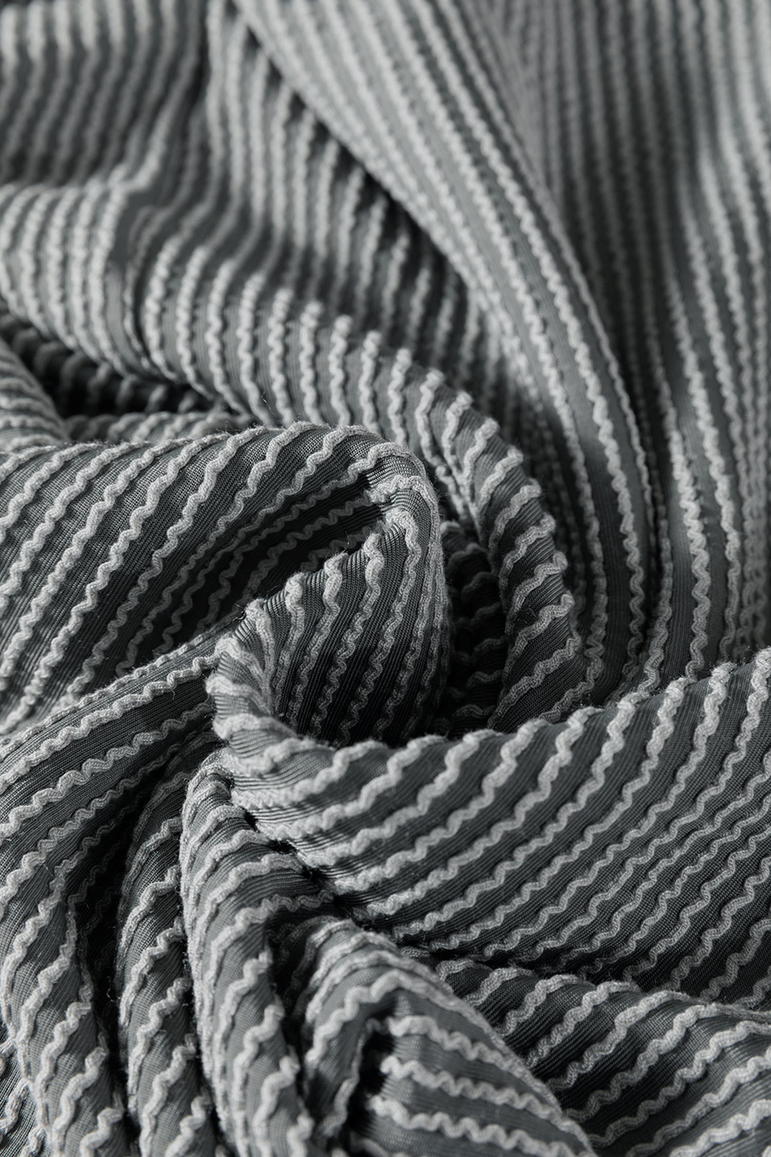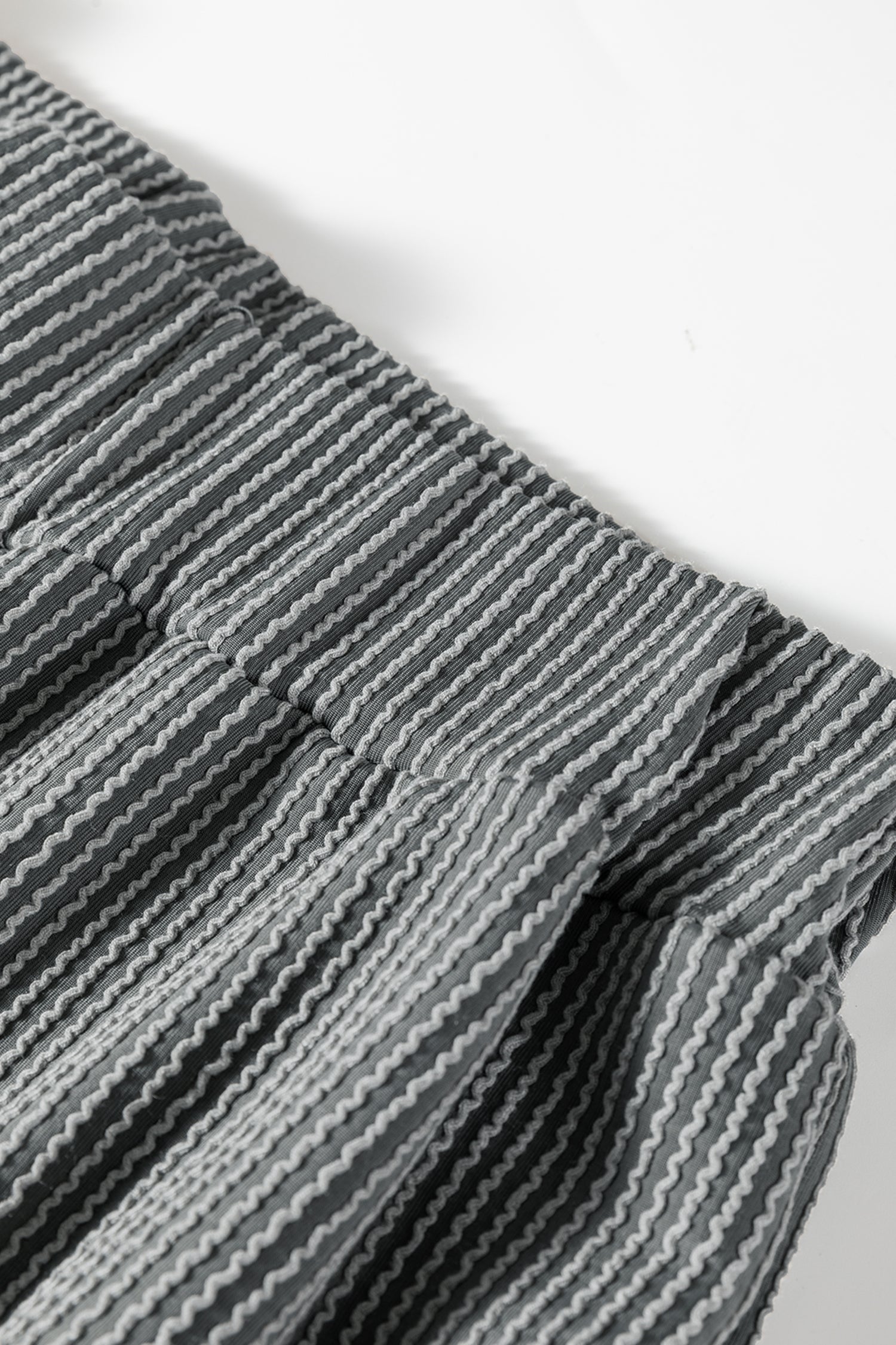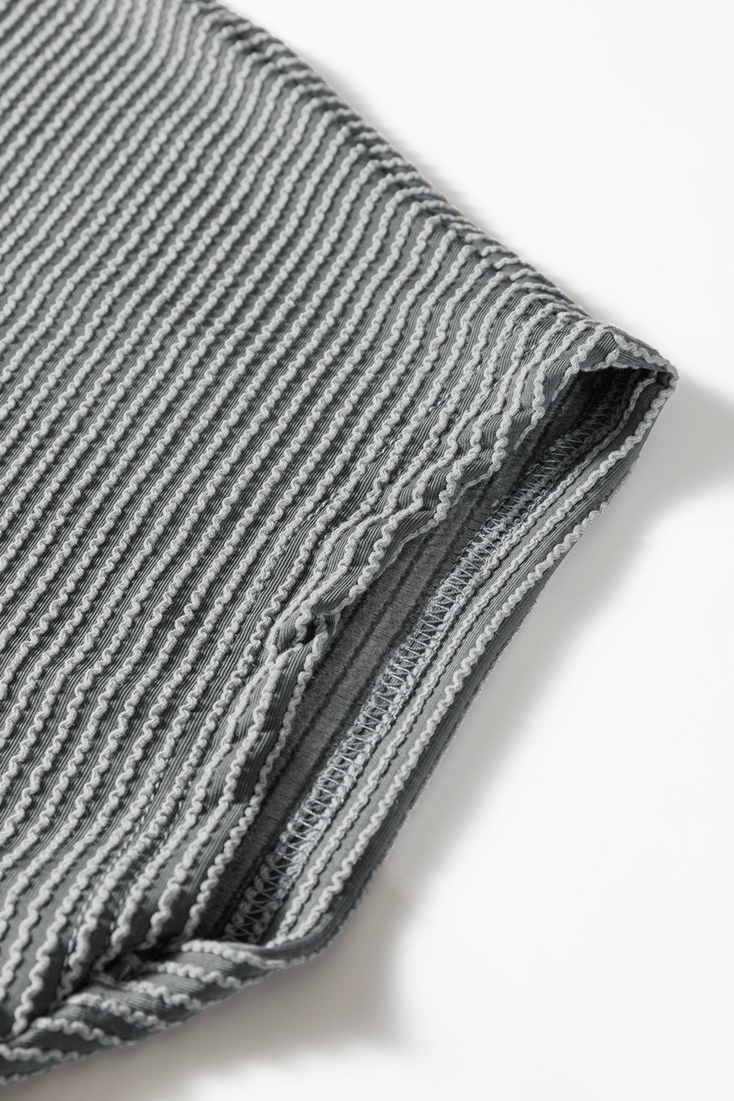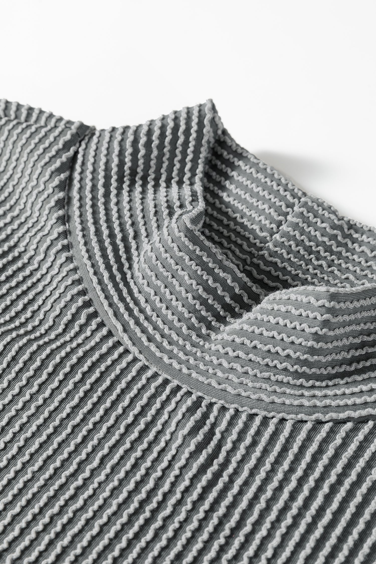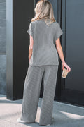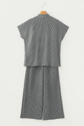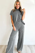 Dark Grey Twisted Ribbed High Neck Loose Tee Elastic High Waist Loose Pant Set