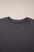 Sale Black Solid Color Seam Detail Raglan Long Sleeve Top