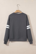 Dark Grey Varsity Striped Detail Drop Shoulder Oversized Sweatshirt