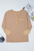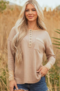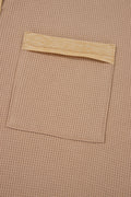 Sale Dark Khaki Color Block Waffle Textured Tunic Henley Top with Slits
