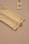 Sale Khaki Checkered Pattern Mesh Mock Neck Long Sleeve Top