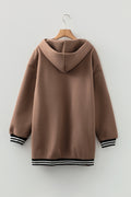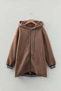 - Zip-up hoodie offers adjustable styling and easy layering.Tunic length provides extended coverage for versatile outfits.Drop shoulder design ensures relaxed comfortable fit.Contrast cuffed sleeves create a chic vigor detail.