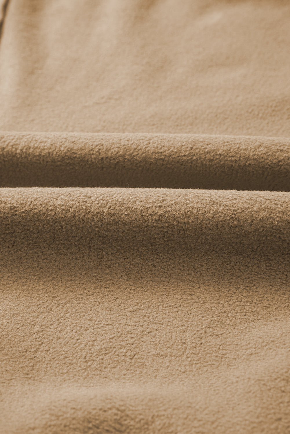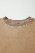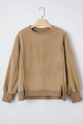 Dark Khaki Fuzzy Sherpa Splicing Pullover Sweatshirt with Side Slit