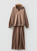 Dark Khaki Polo Collar V Neck Pullover and Drawstring Sweatpants Set