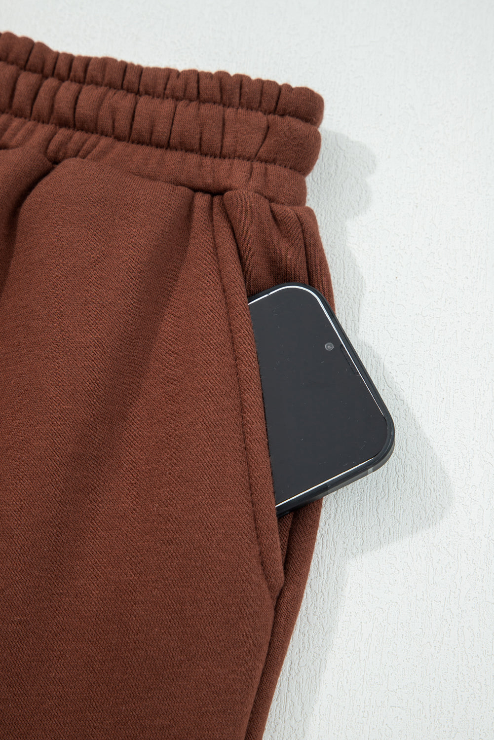 Dear Lovers Coffee Fleece Lined Leopard Drawstring Elastic Waist Solid Pants