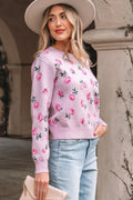 Delicacy Sweet Floral Print Drop Shoulder Cropped Sweater
