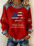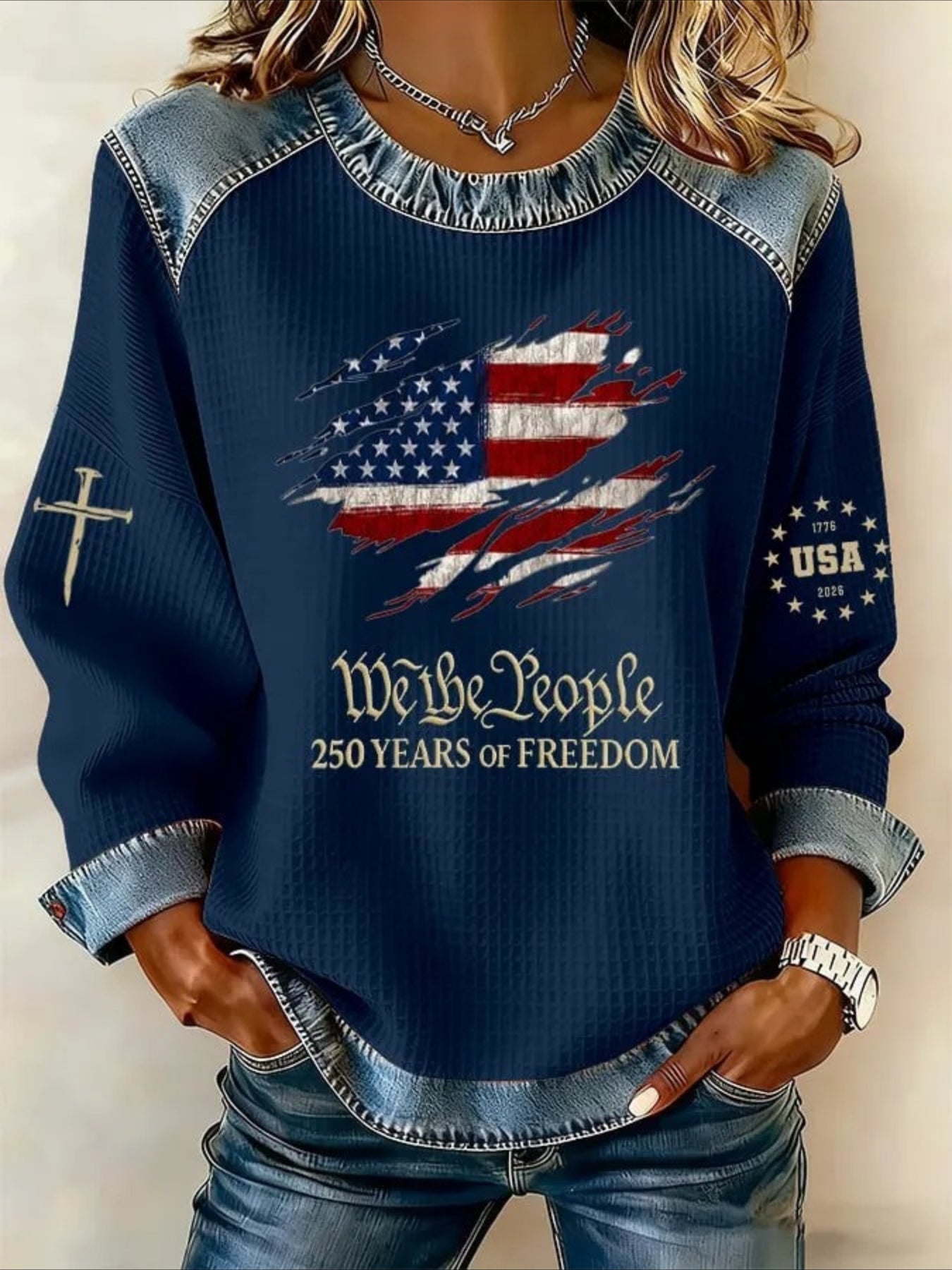 USA 250th Anniversary Printed Crew Neck Floral Long Sleeve Sweater Hoodie