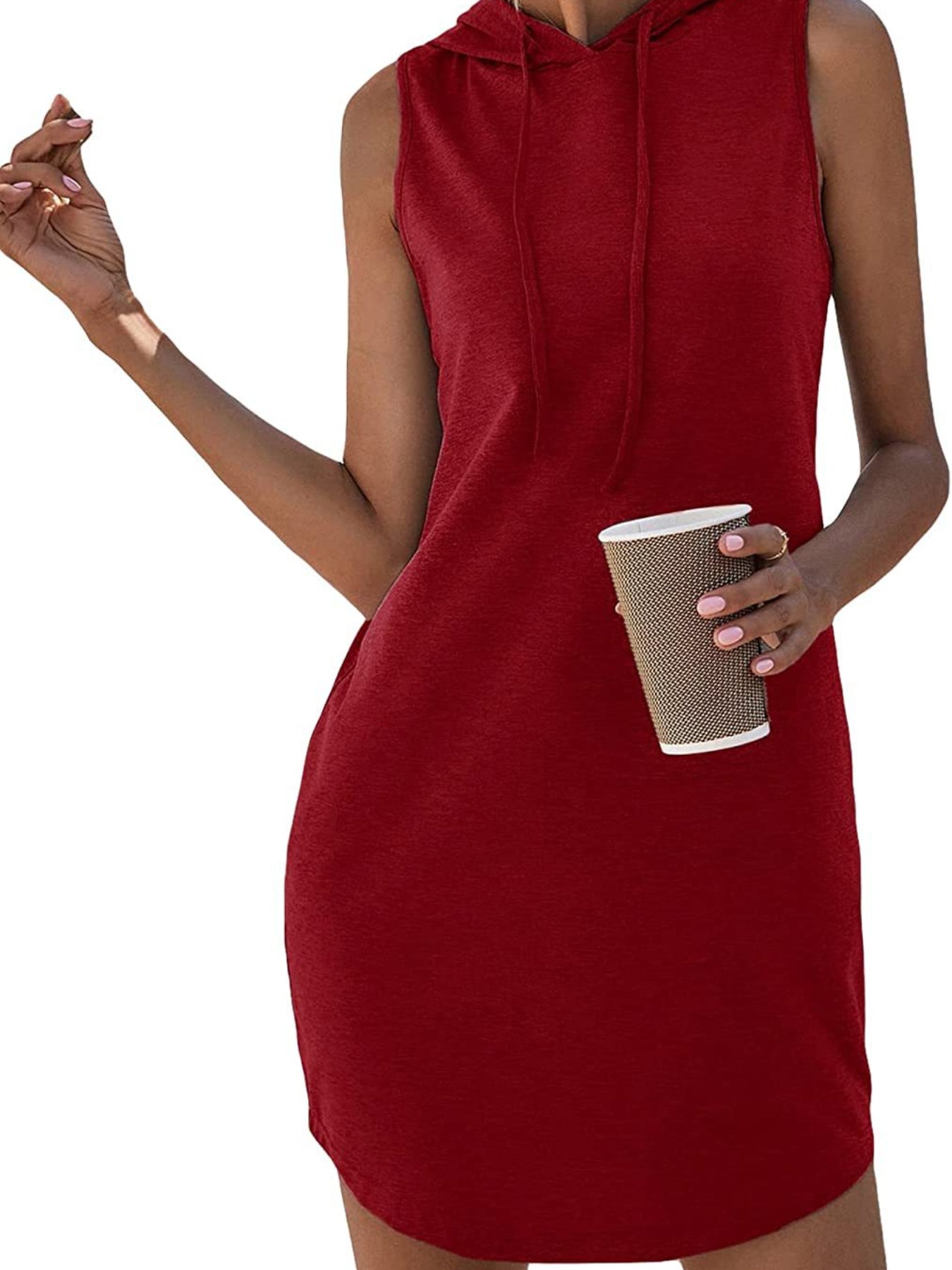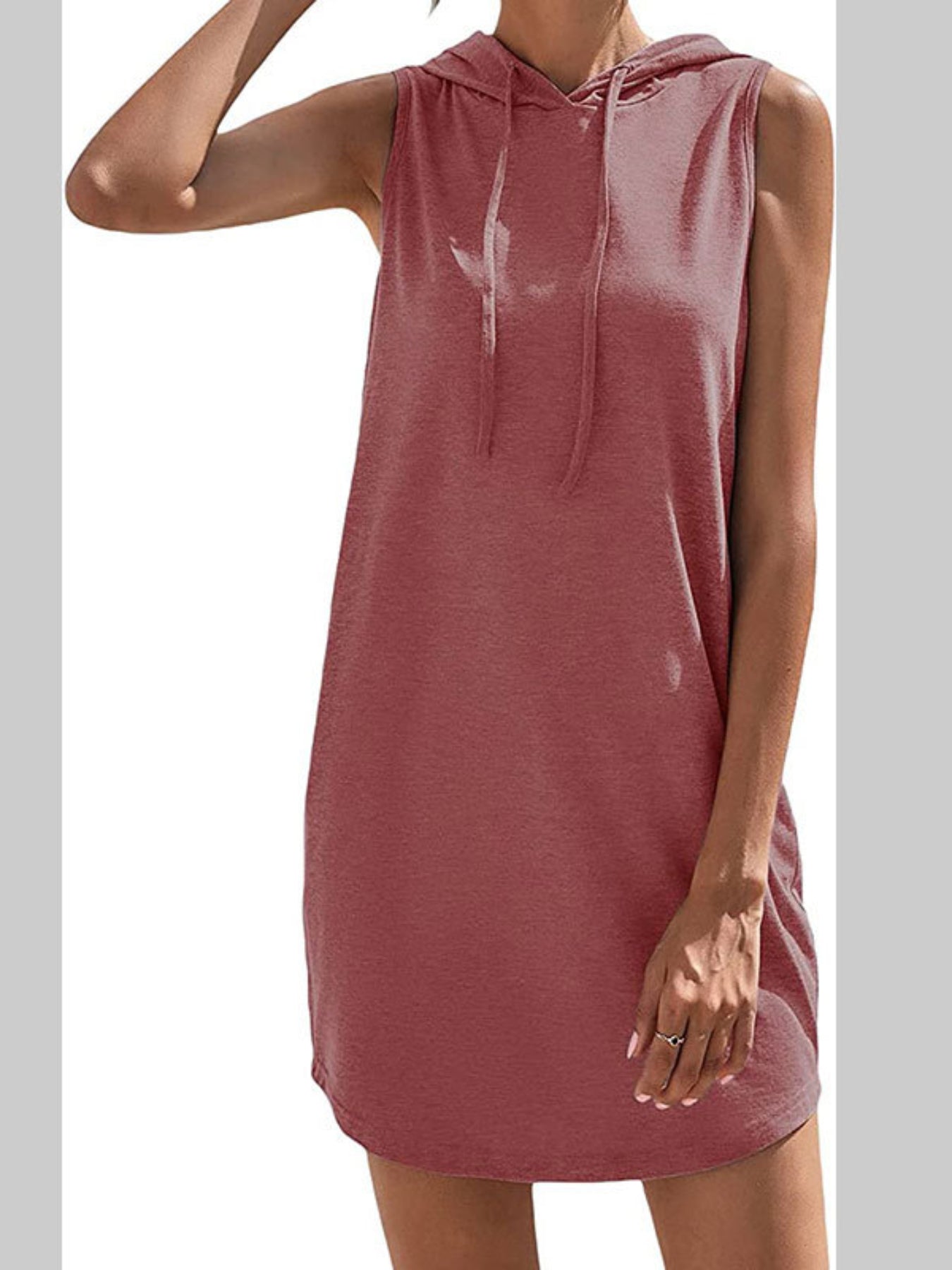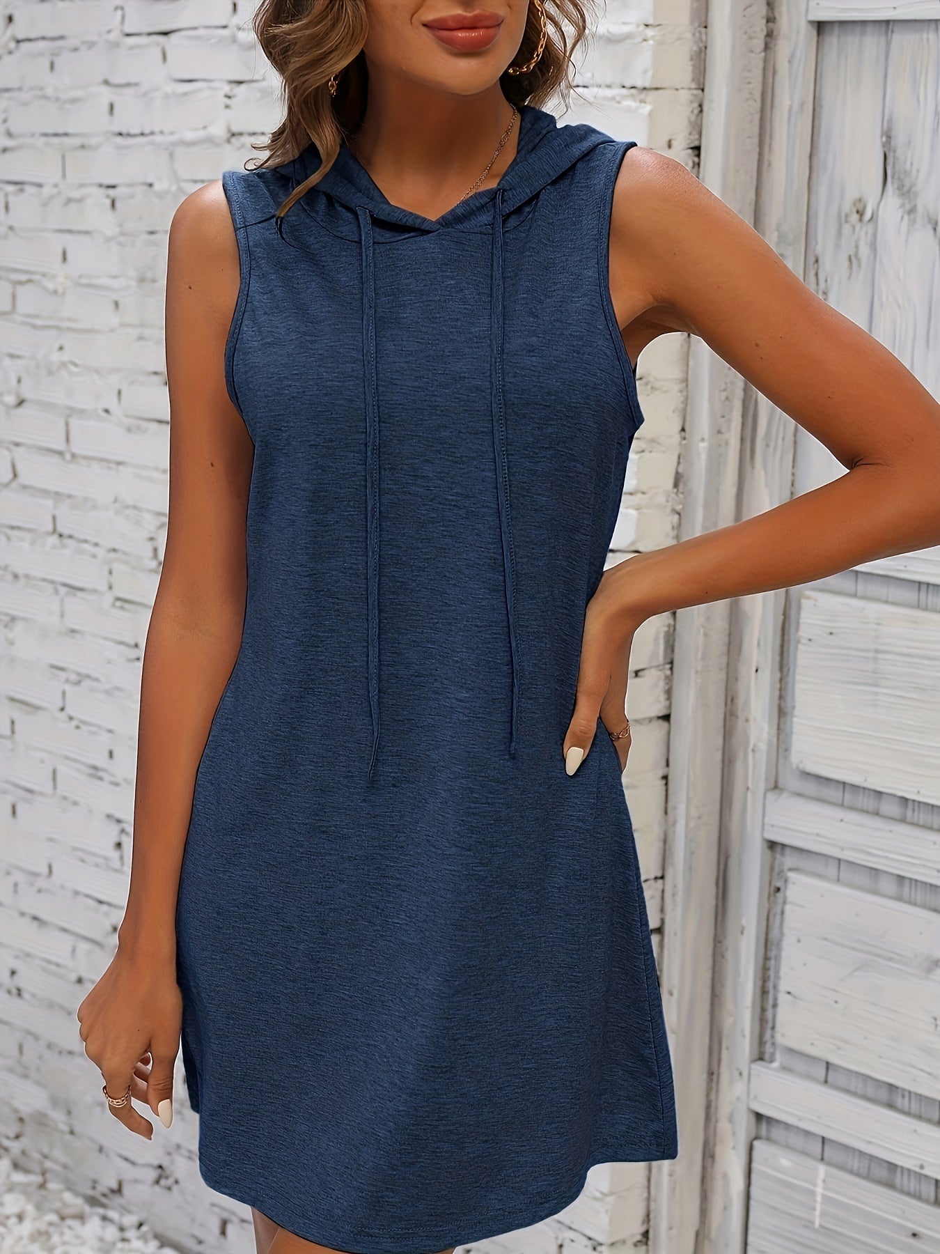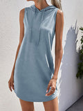 Drawstring Sleeveless Hooded Dress, Casual Dress