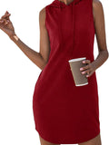 Sale Drawstring Sleeveless Hooded Dress, Casual Dress