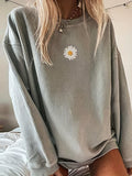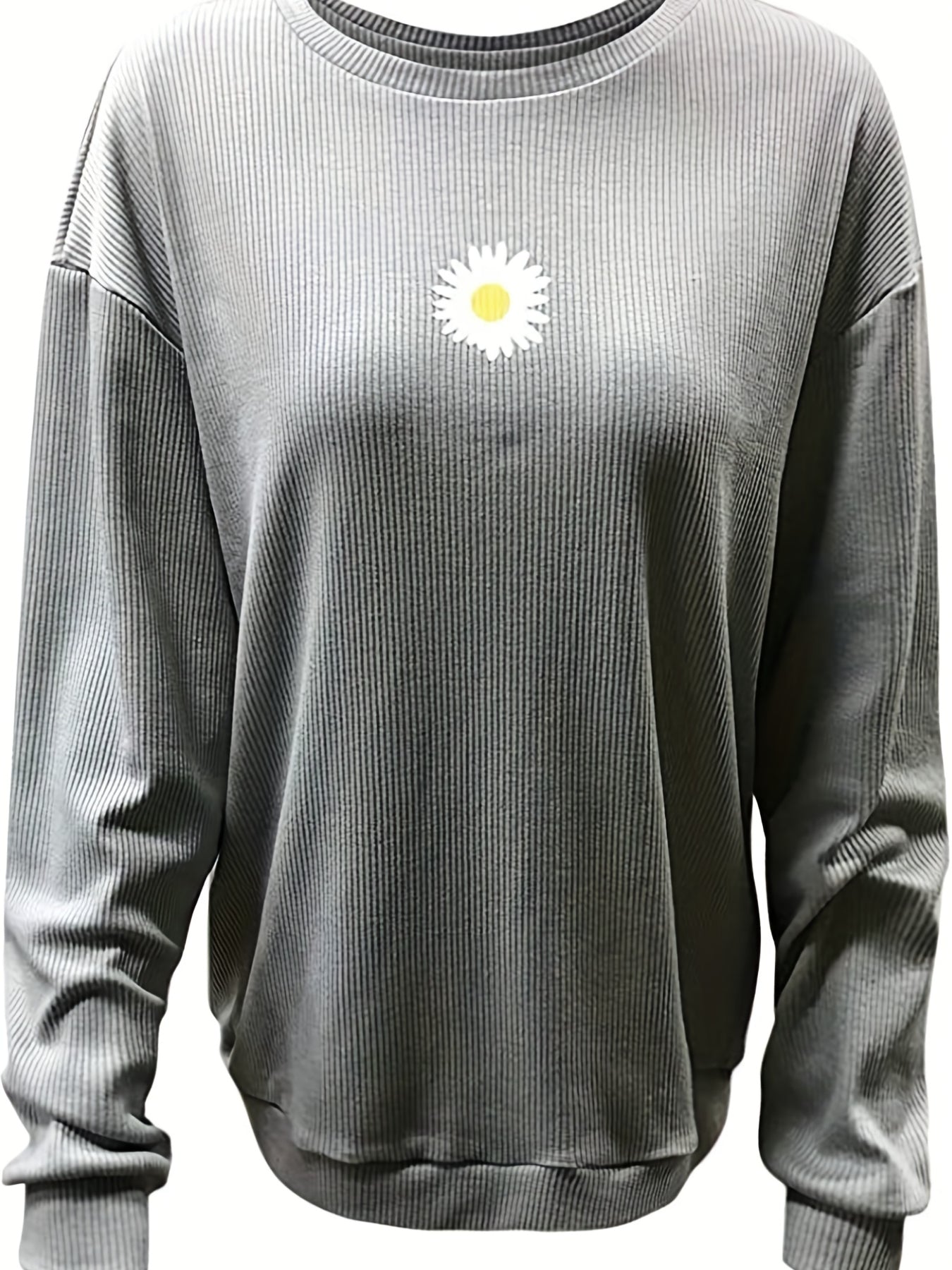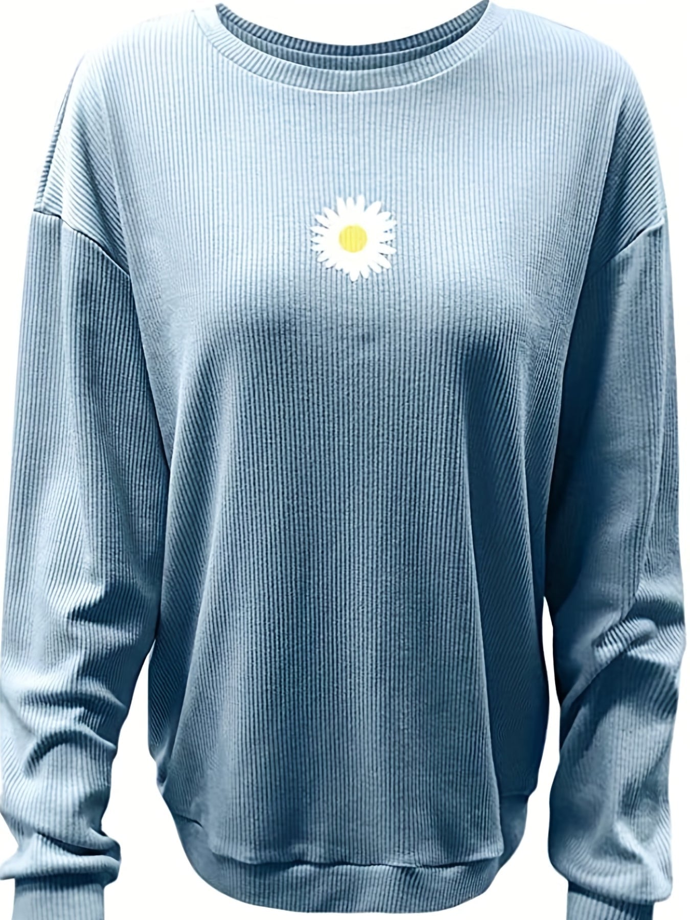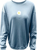 Crew Neck Floral Long Sleeve Comfy Casual Sweater Tee