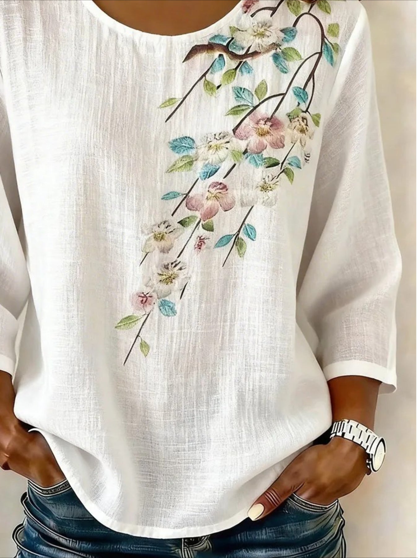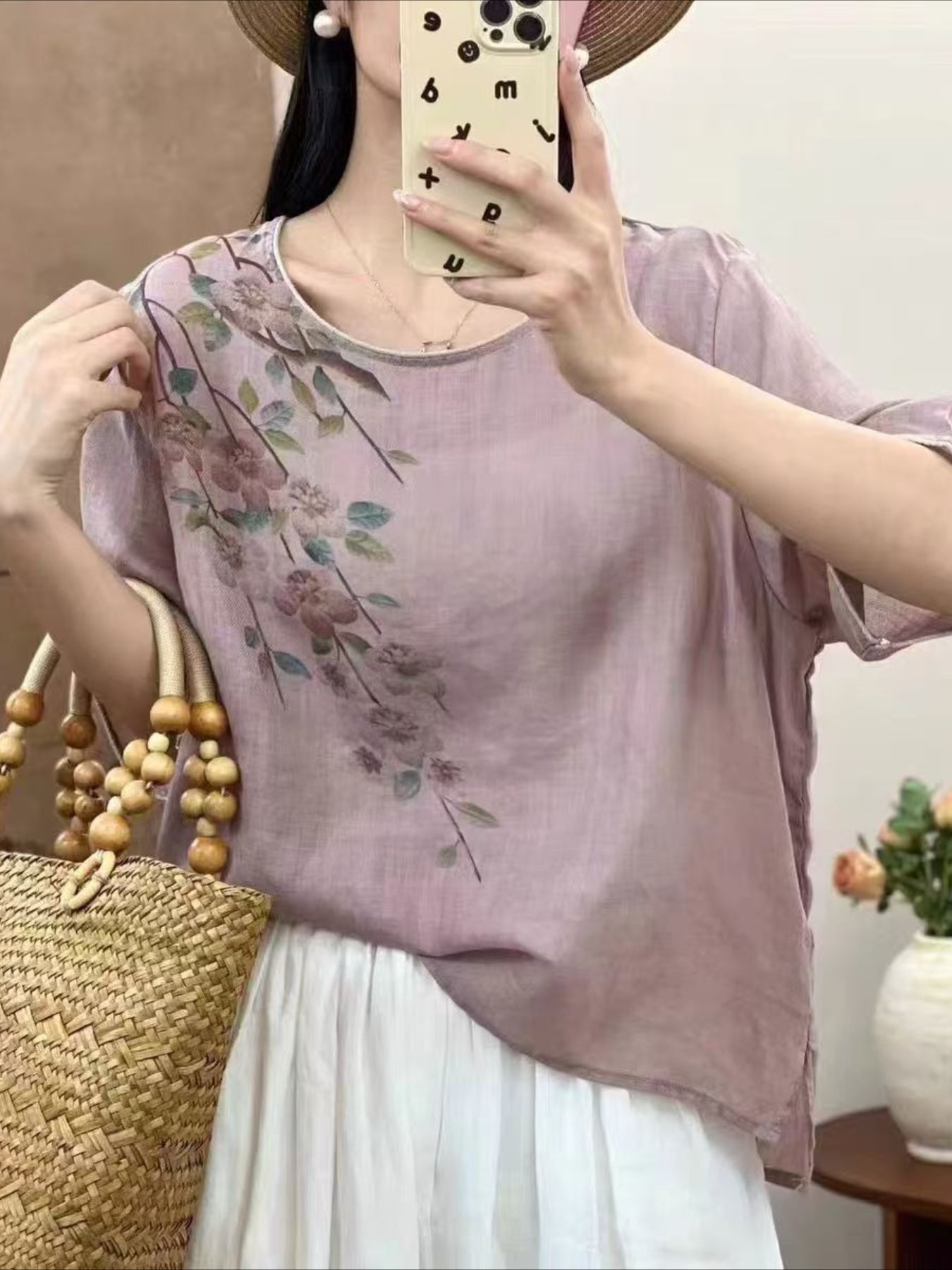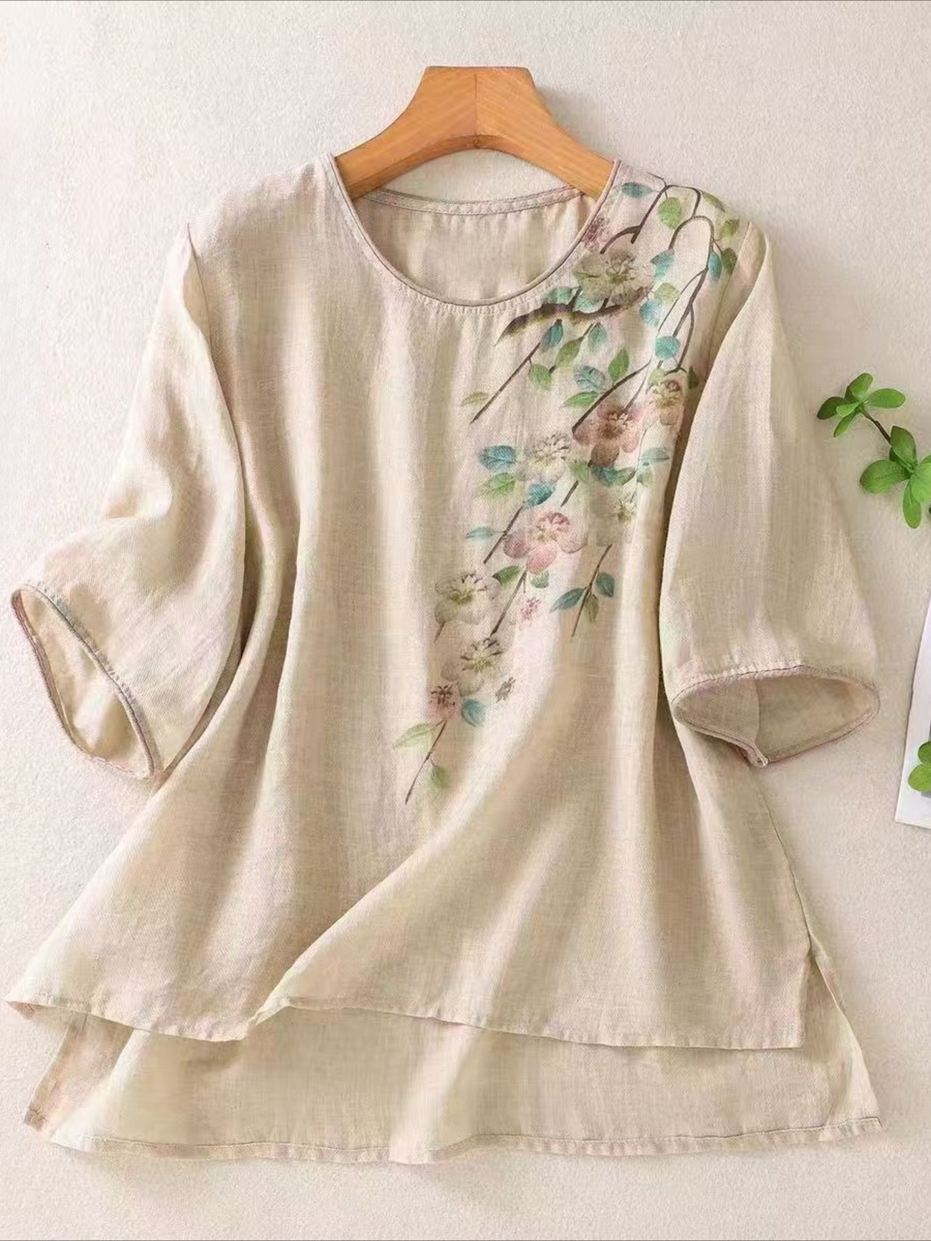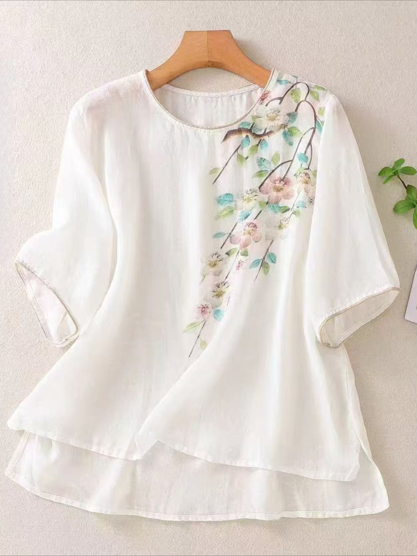 Crew Neck Short Sleeve Embroidery Patterns Regular Loose Shirt