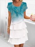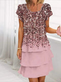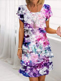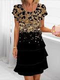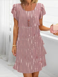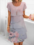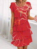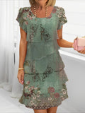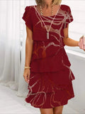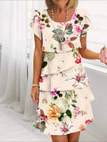 Elegant Daily Regular Fit Floral Geometric Short Sleeve Crew Neck Midi Dress