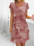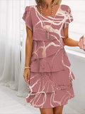 Sale V Neck Short Sleeves Print Casual Midi Dress