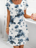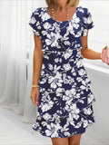 Sale Elegant Floral Print Knee-Length Short Sleeve Round Neck A-Line Dress
