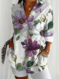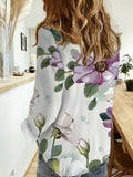 Elegant Floral Print Casual Lapel Collar Long Sleeve Button Top