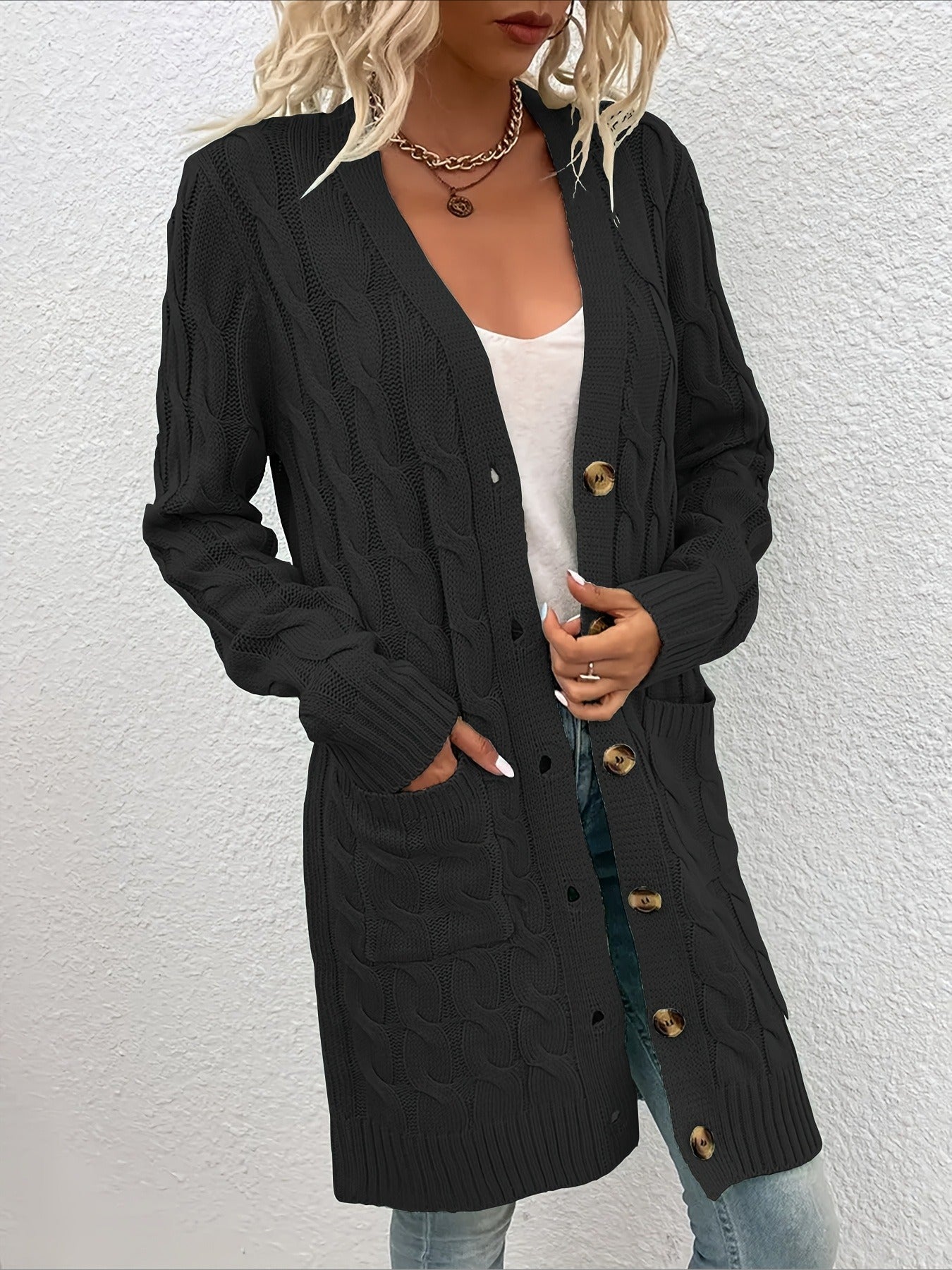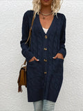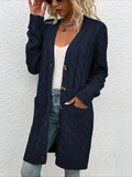 Button Plain Long Sleeve Comfy Casual Cardigan