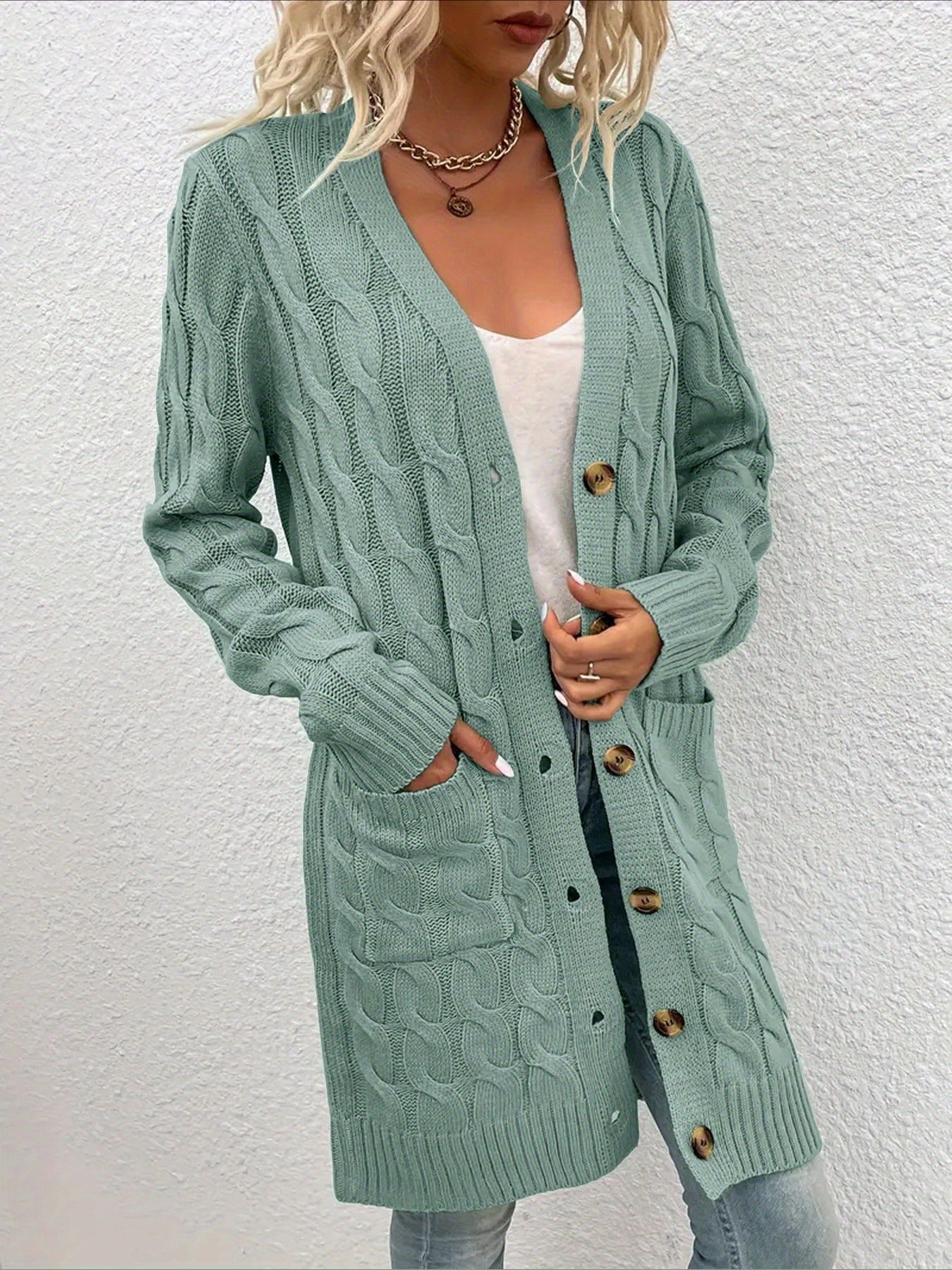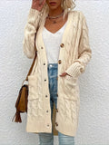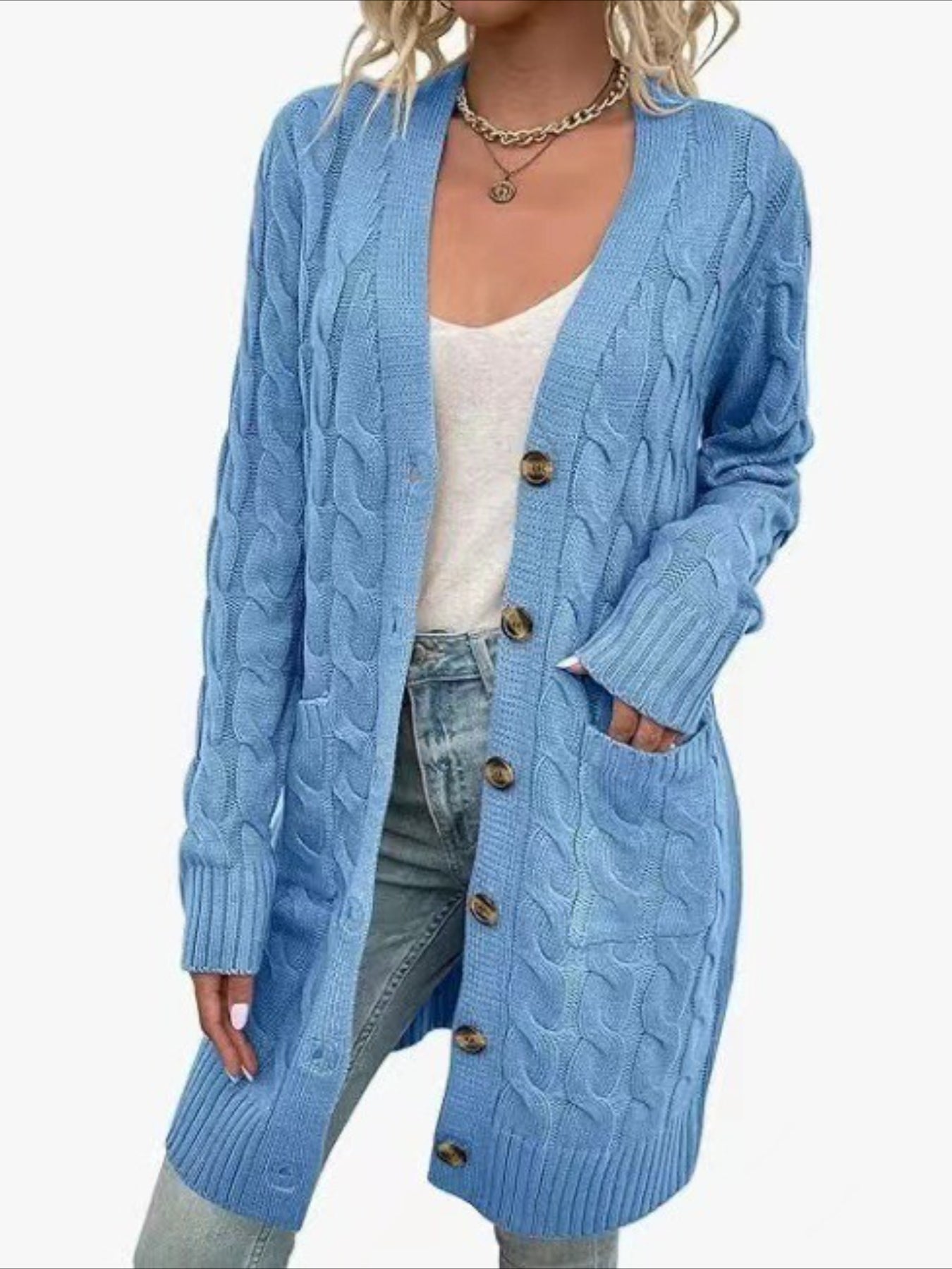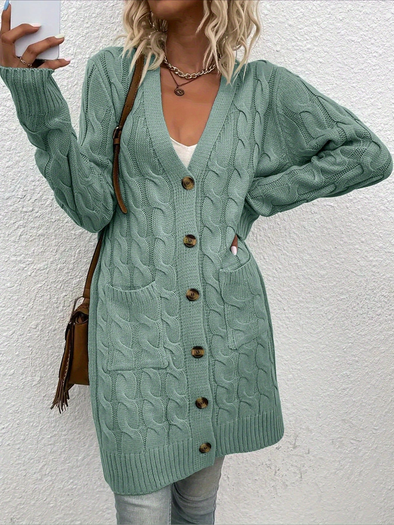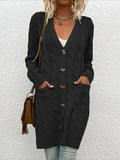 Elegant Long Nylon Soft Warm V-Neck Long Sleeves Sweater with Button Front