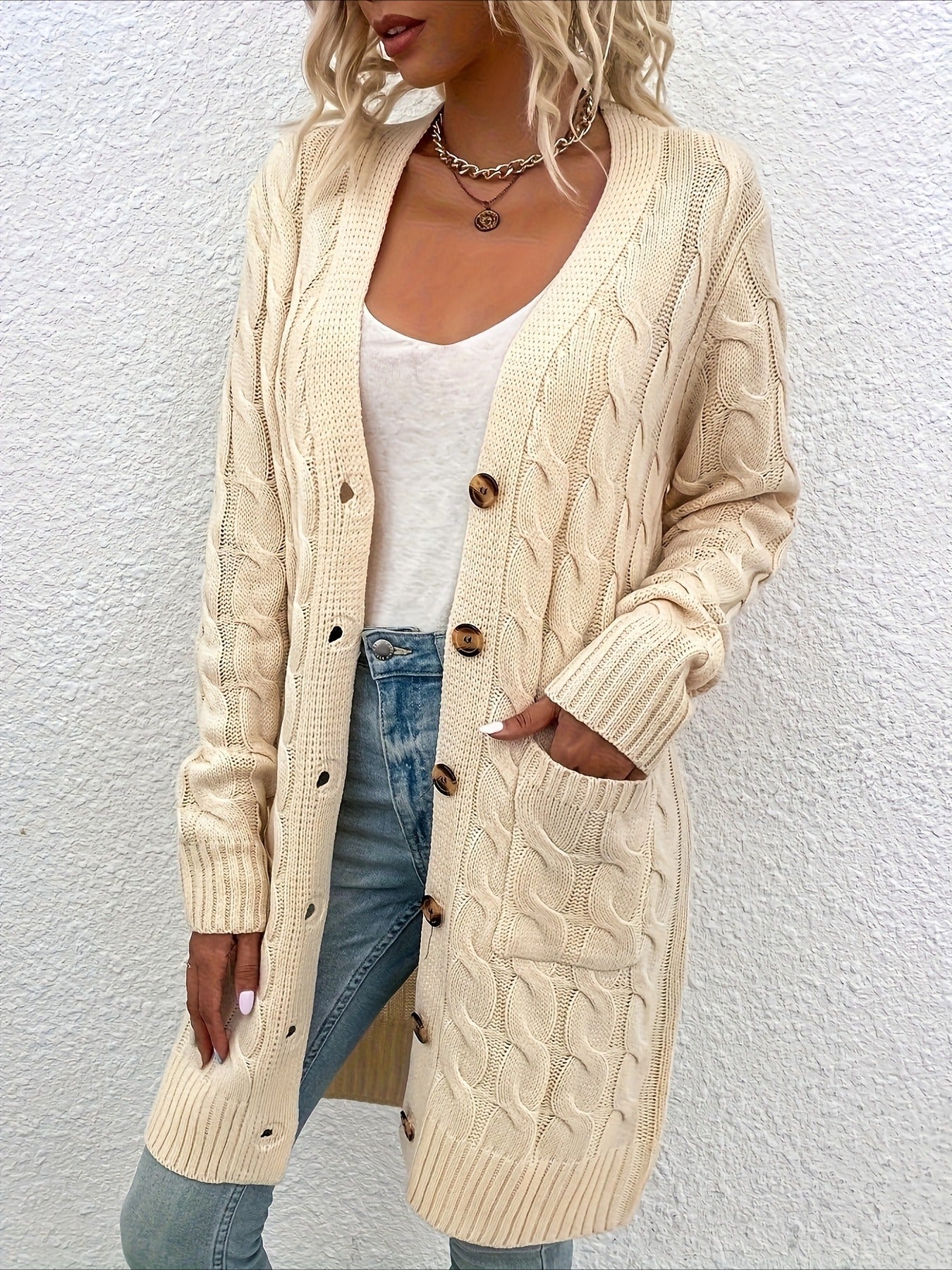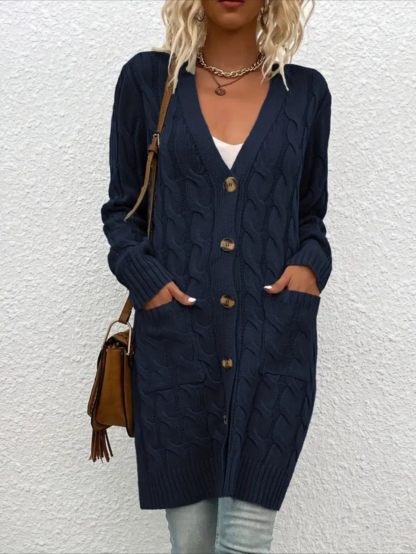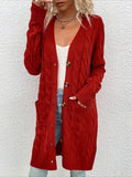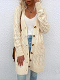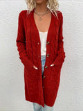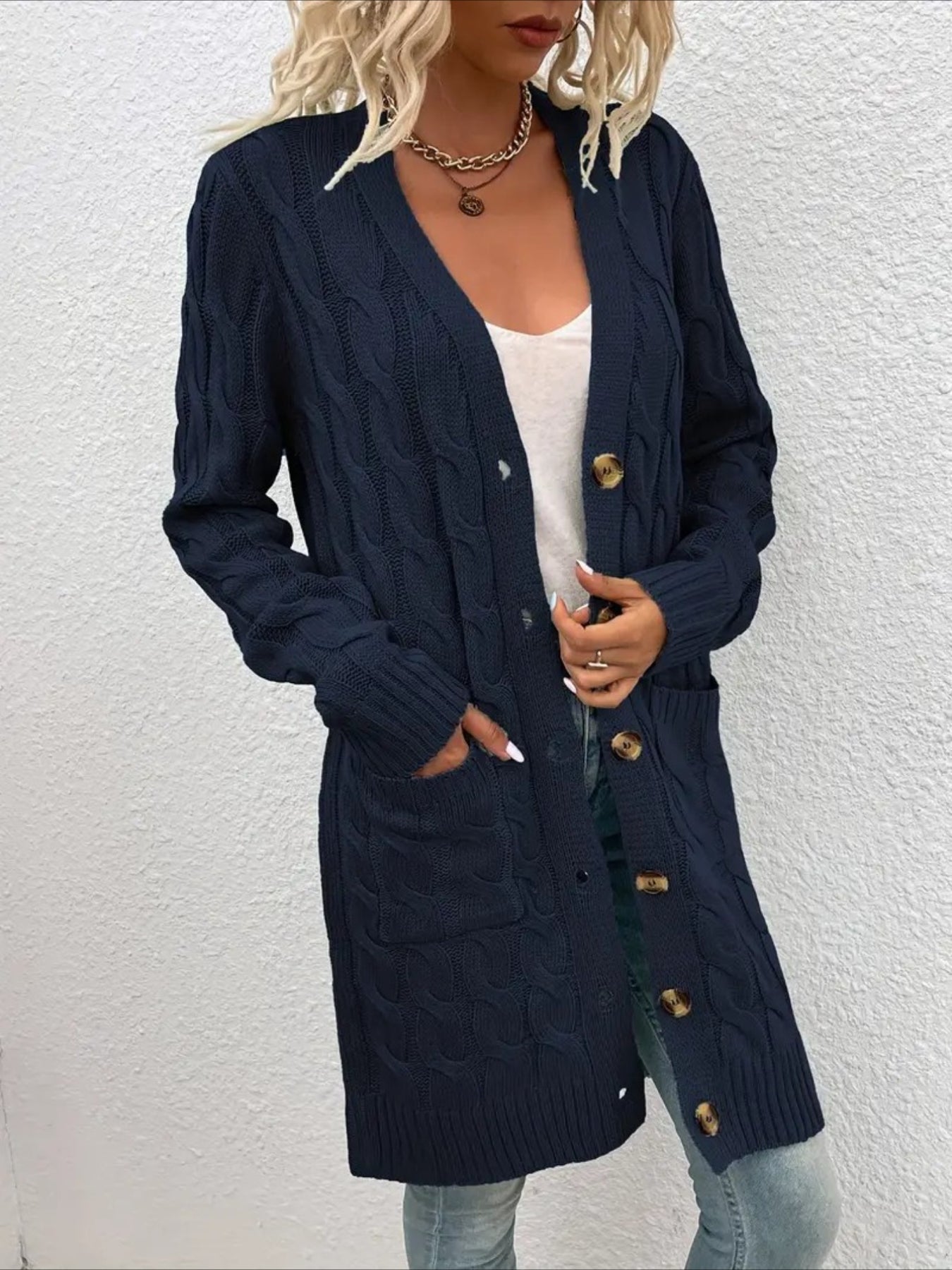 Elegant Long Nylon Soft Warm V-Neck Long Sleeves Sweater with Button Front
