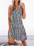 Elegant Sleeveless Dress - All-Over Keyhole Design, Flattering Crew Neckline
