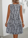 Sale Elegant Floral Print Knee-Length Short Sleeve Round Neck A-Line Dress