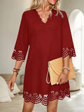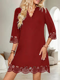 Elegant Slimming A-Line V-Neck Long Sleeve Dress