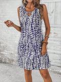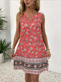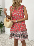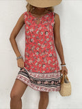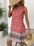 Sale Ethnic Floral Print Crew Neck Dress, Casual Sleeveless Dress